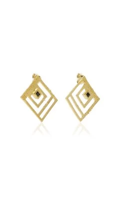 Cast in gold-plated brass, these abstract donut shaped earrings will pair perfectly with swept back hair to show them off.