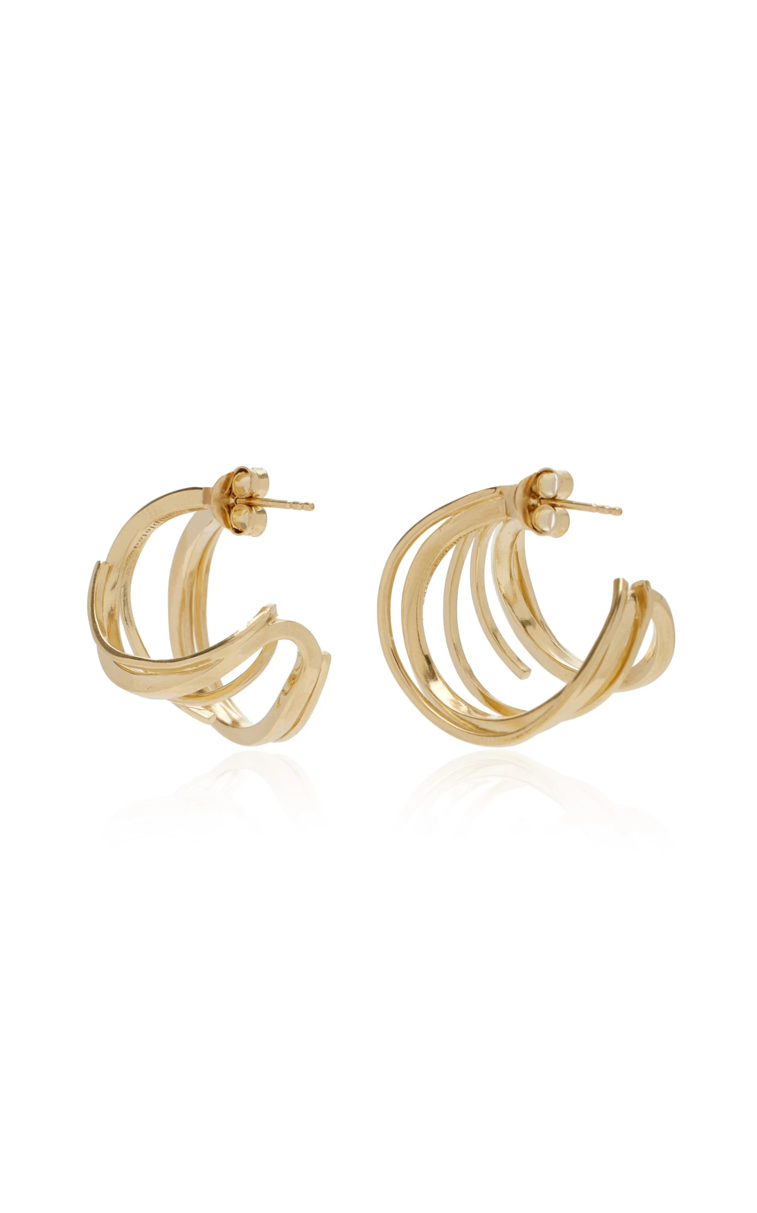 With an intricate hoop shape, these earrings are meticulously crafted from 14k gold-plated recycled silver.