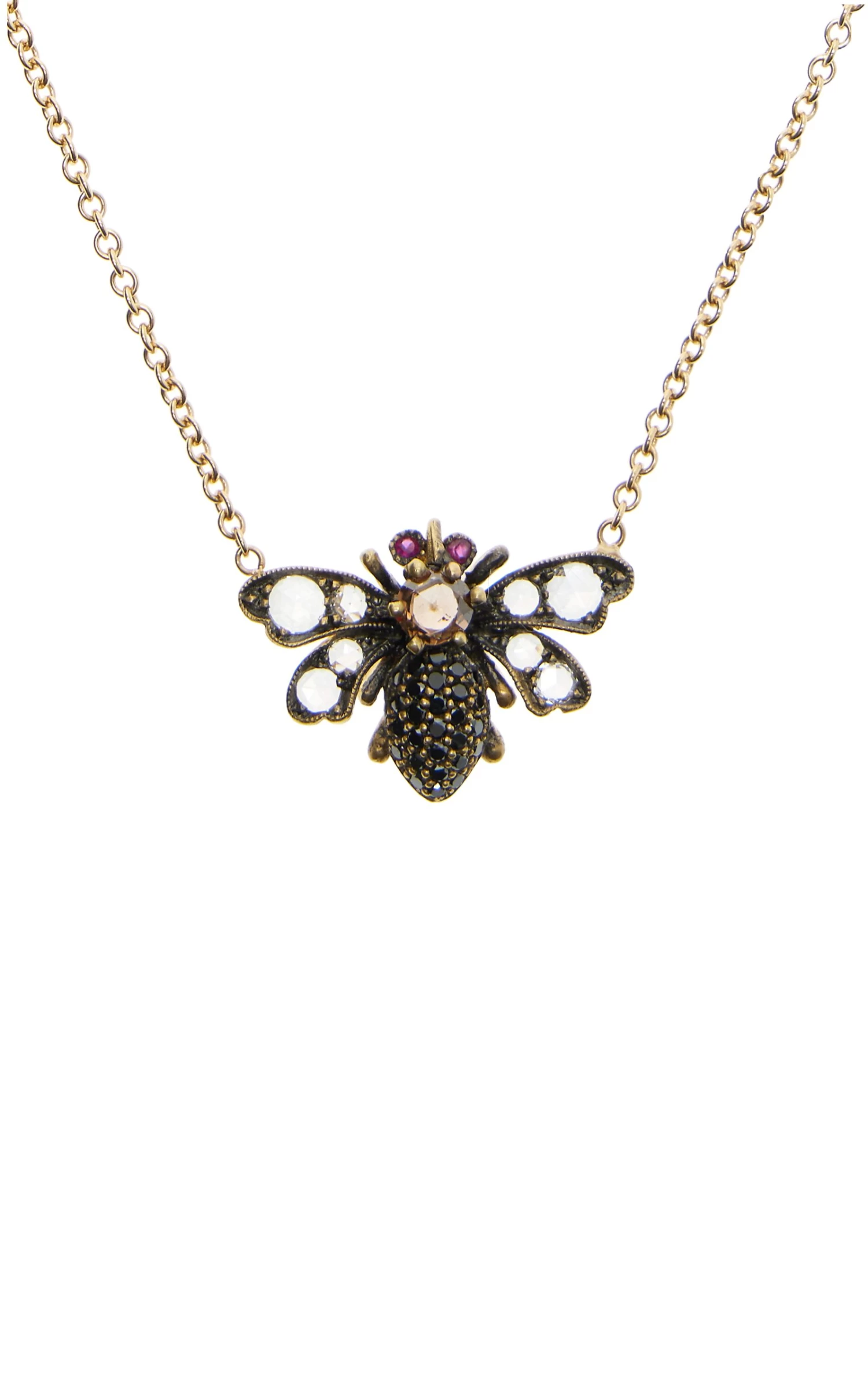 18K Gold, Diamond And Ruby Bee Pendant Necklace