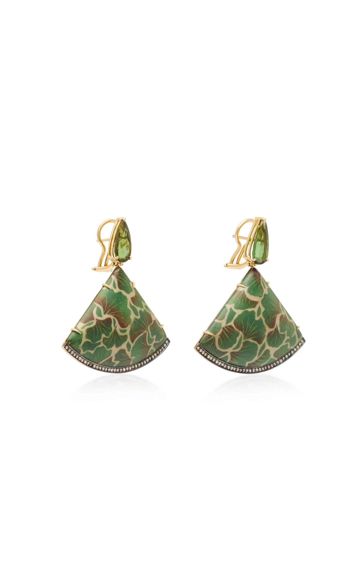 Born to a renowned goldsmith in Brazil, Silvia Furmanovich was exposed to the best materials and techniques from childhood – knowledge which continues to inform her artisanal work. Forged from 18-karat yellow gold, these triangular earrings have green tourmaline studs weighing over five carats and sparkling light brown diamond accents.