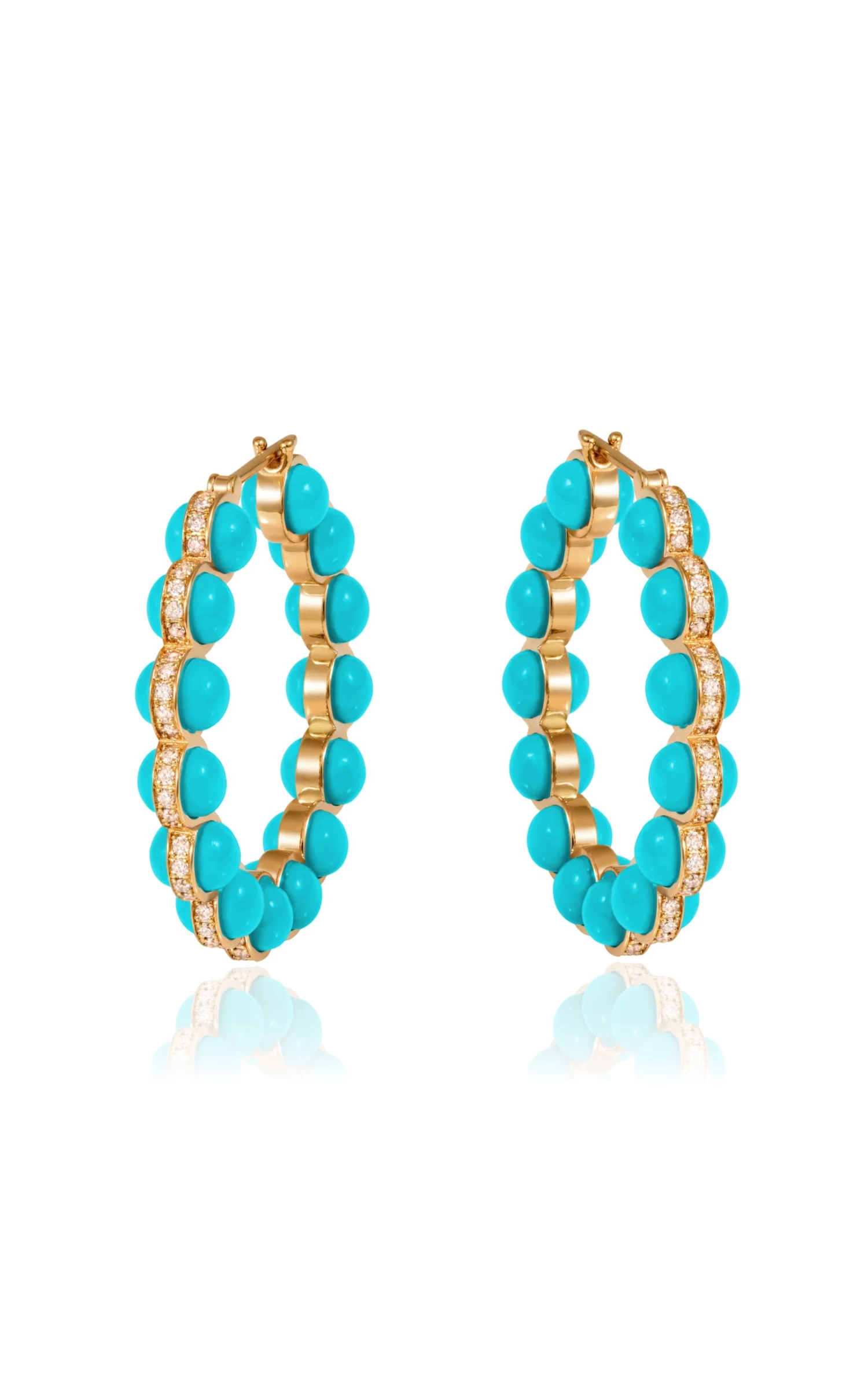 18K Yellow Gold The Atom Diamond And Turquoise Enamel Earrings