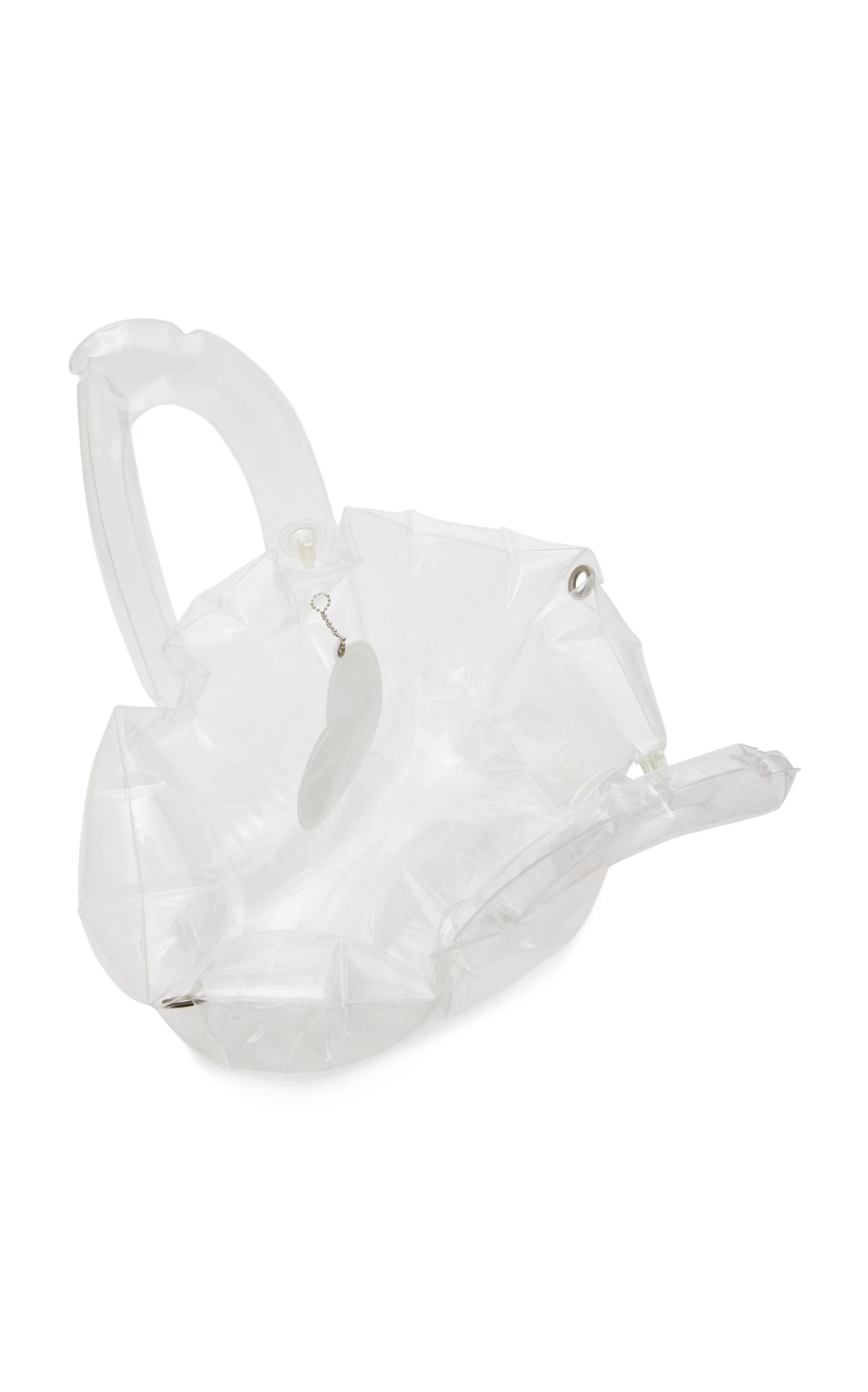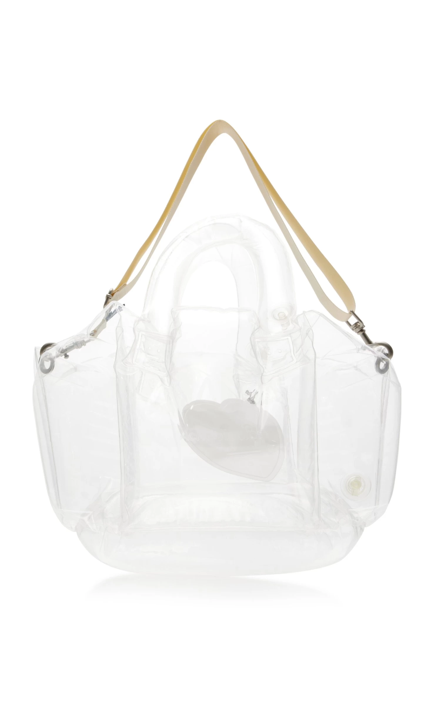 Inspired by the 90s inflatable trend, the ‘Adhea’ is made from completely transparent PVC that can be puffed up to give it a bubble shape. It’s topped off with a heart charm for added sweetness.