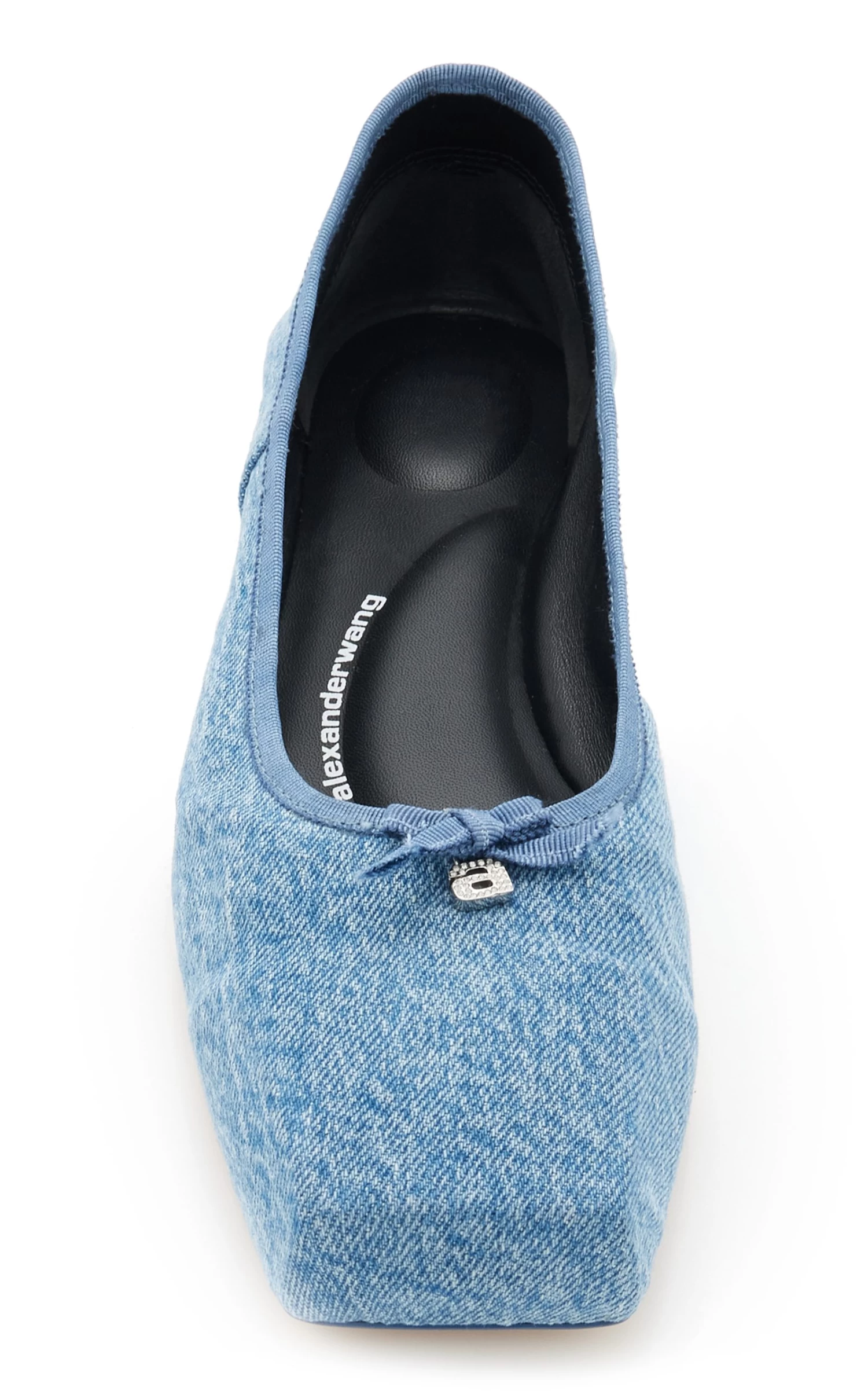 Made from cotton denim with a leather outsole, the ‘Billie’ flats have a square toe shape. Wear yours with a mini skirt and cropped top from the brand.