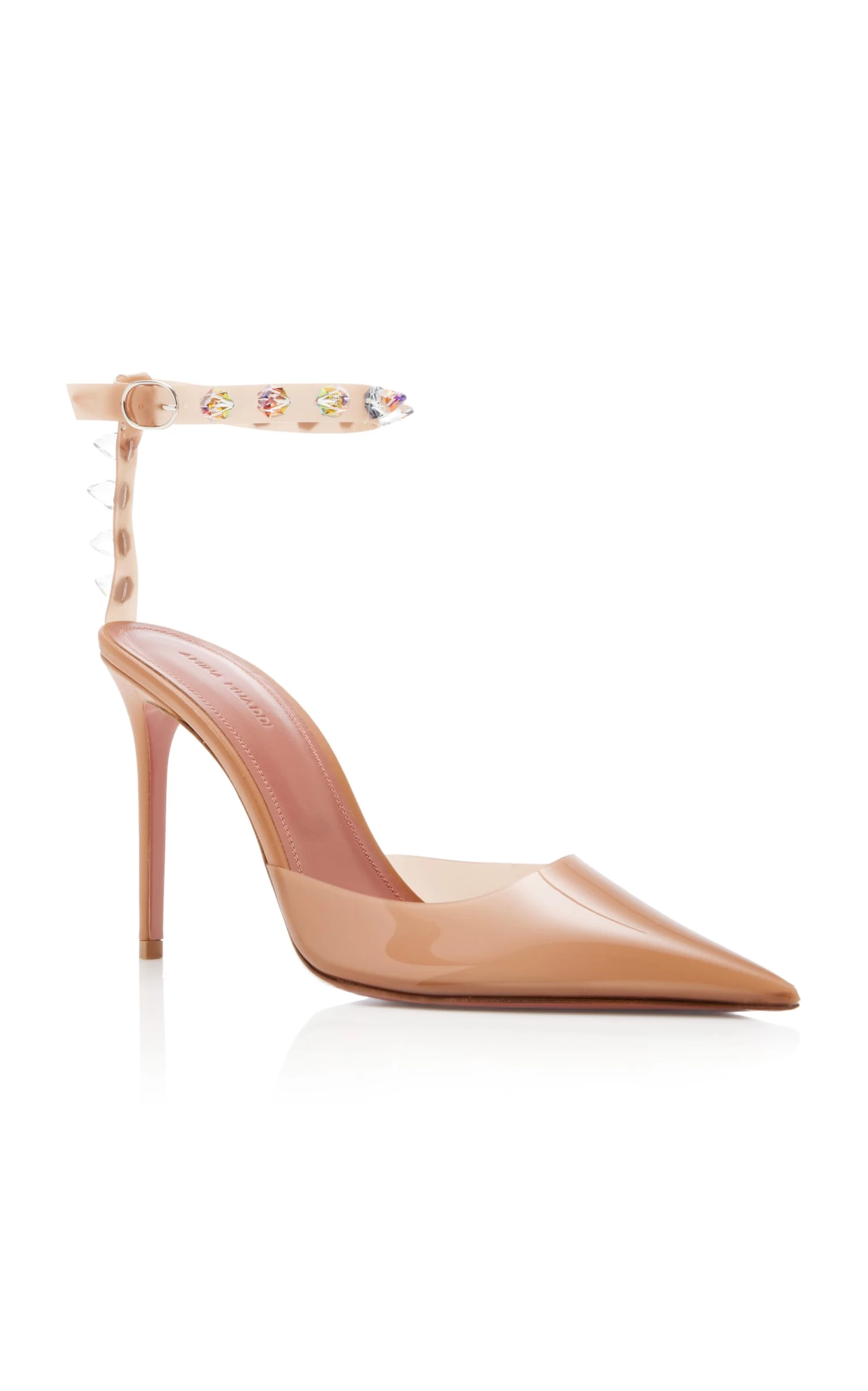 Designed with a glitzy crystal-encrusted ankle strap, these ‘Julia’ pumps are expertly crafted from transparent PVC. Wear yours to glam up evening looks.
