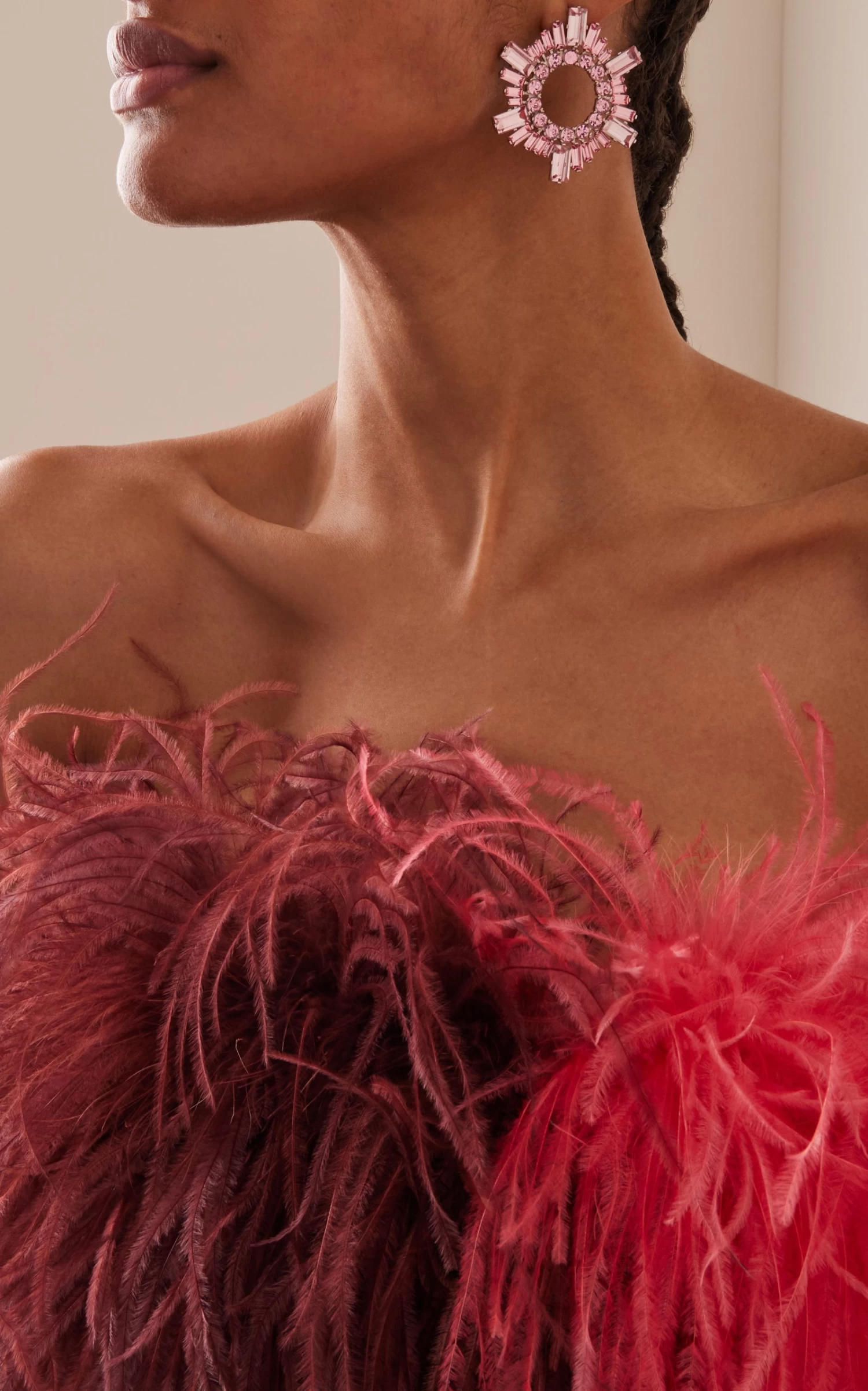 The ‘Begum’ earrings are inspired by the label’s wildly popular pumps of the same name. They’re cast from silver-tone brass into Art Deco sunburst hoops set with dazzling glass crystals that catch the light.