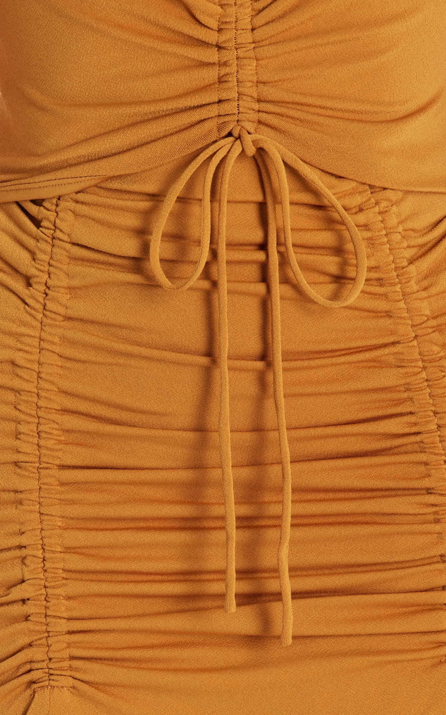 This two-piece set has a fitted silhouette featuring a cropped, long sleeve top and fit-to-flare midi skirt, both detailed with drawstring gathers and ruching. Simply add a pair of strappy sandals to finish the look.