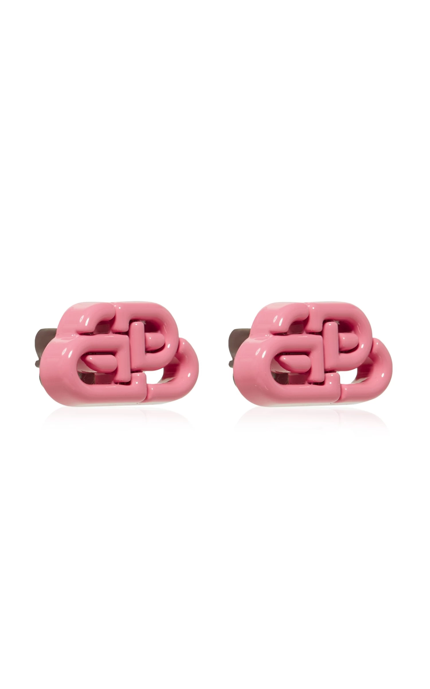 These stud earrings from Balenciaga are designed in the shape of the house’s updated emblem — even the backings mirror the logo. They’ve been made in Italy from glossy pink enamel into a sizable silhouette that’s comfortably lightweight. Wear yours with matching pieces to show your allegiance to the label.
