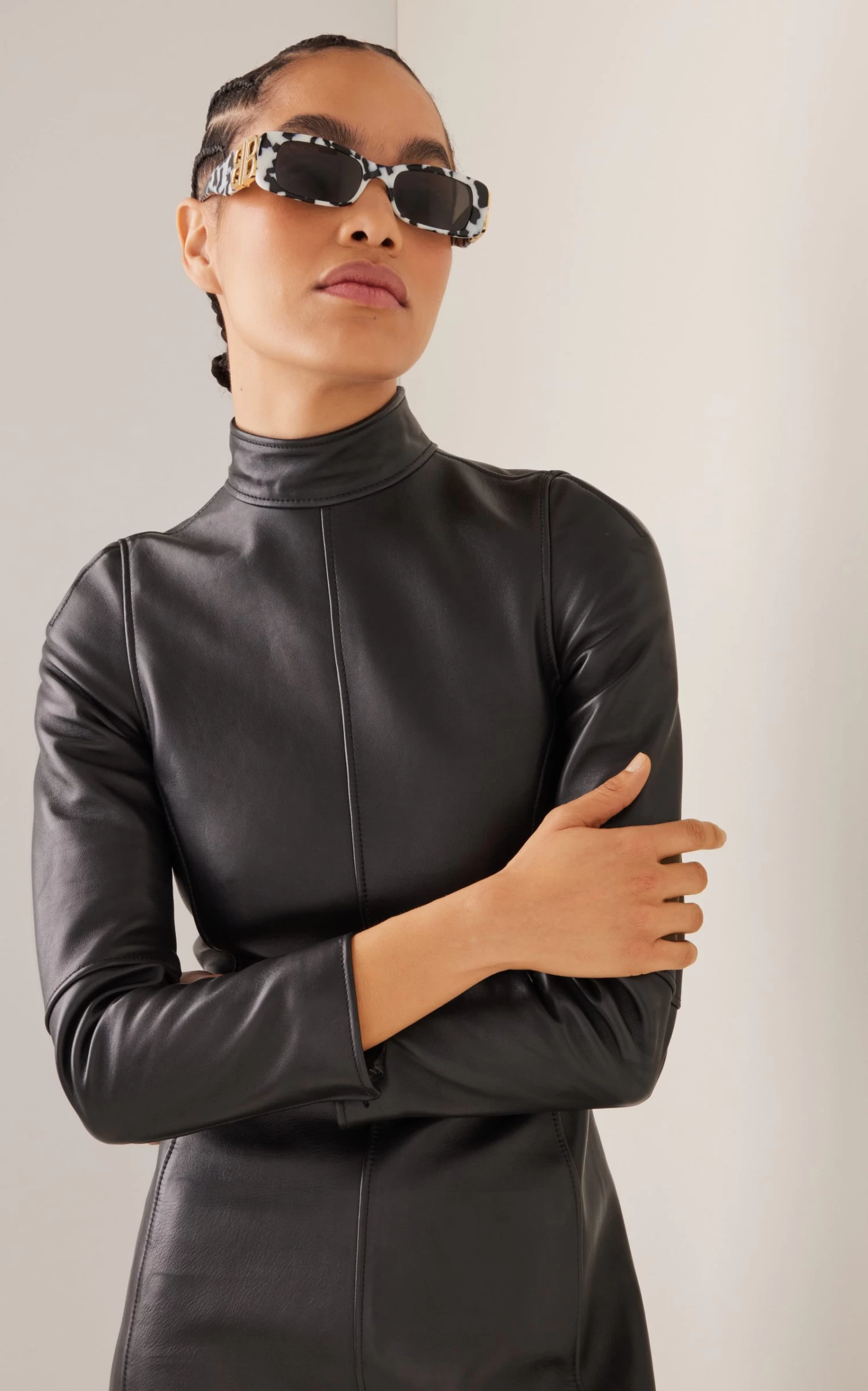 Balenciaga’s ‘Dynasty’ sunglasses take inspiration from the glamour of the ’80s. They’ve been crafted in Italy from black and white tortoiseshell acetate into slim rectangular frames with chunky arms punctuated by large gold-tone BB hardware. Store them in the accompanying case to keep them pristine.