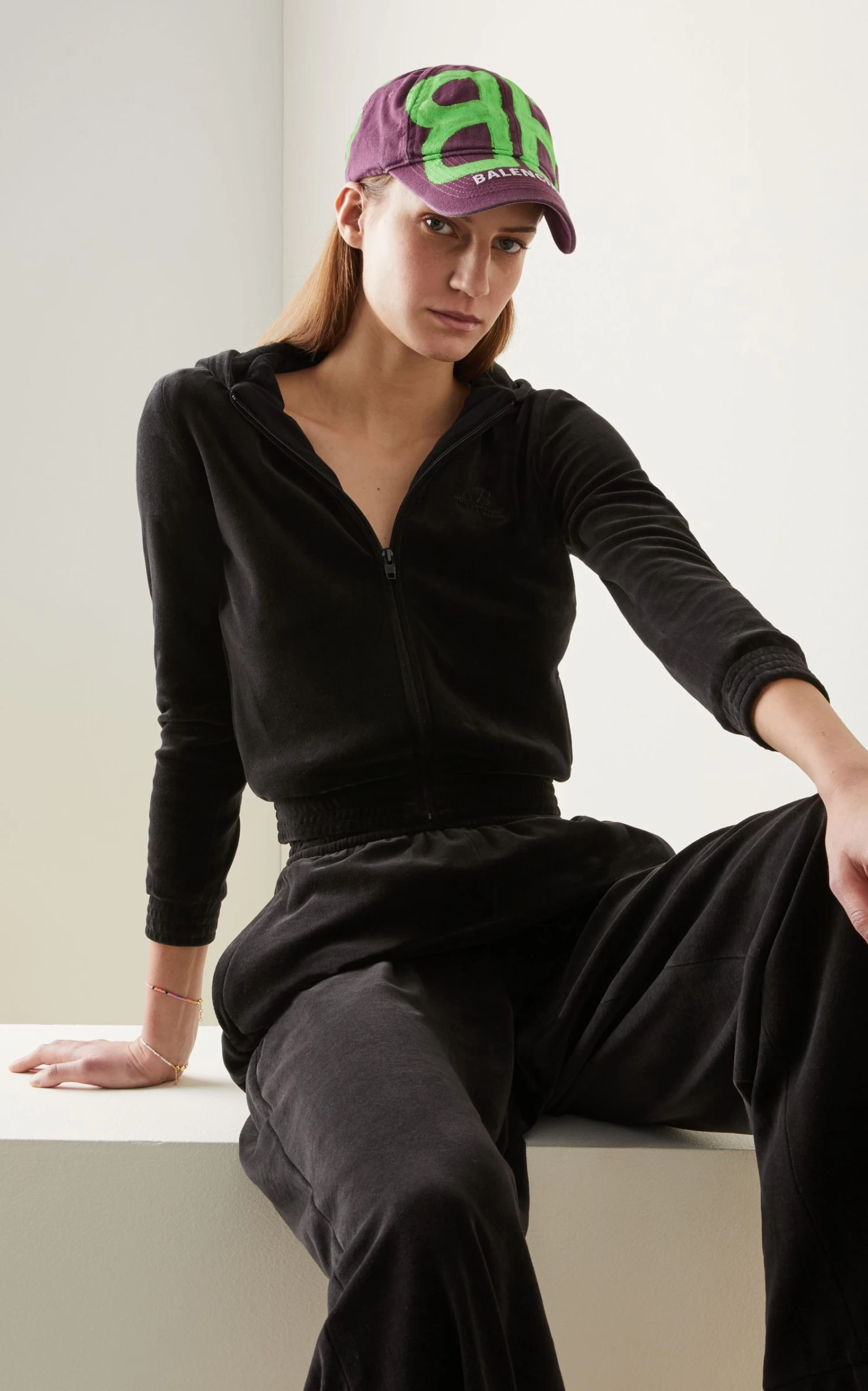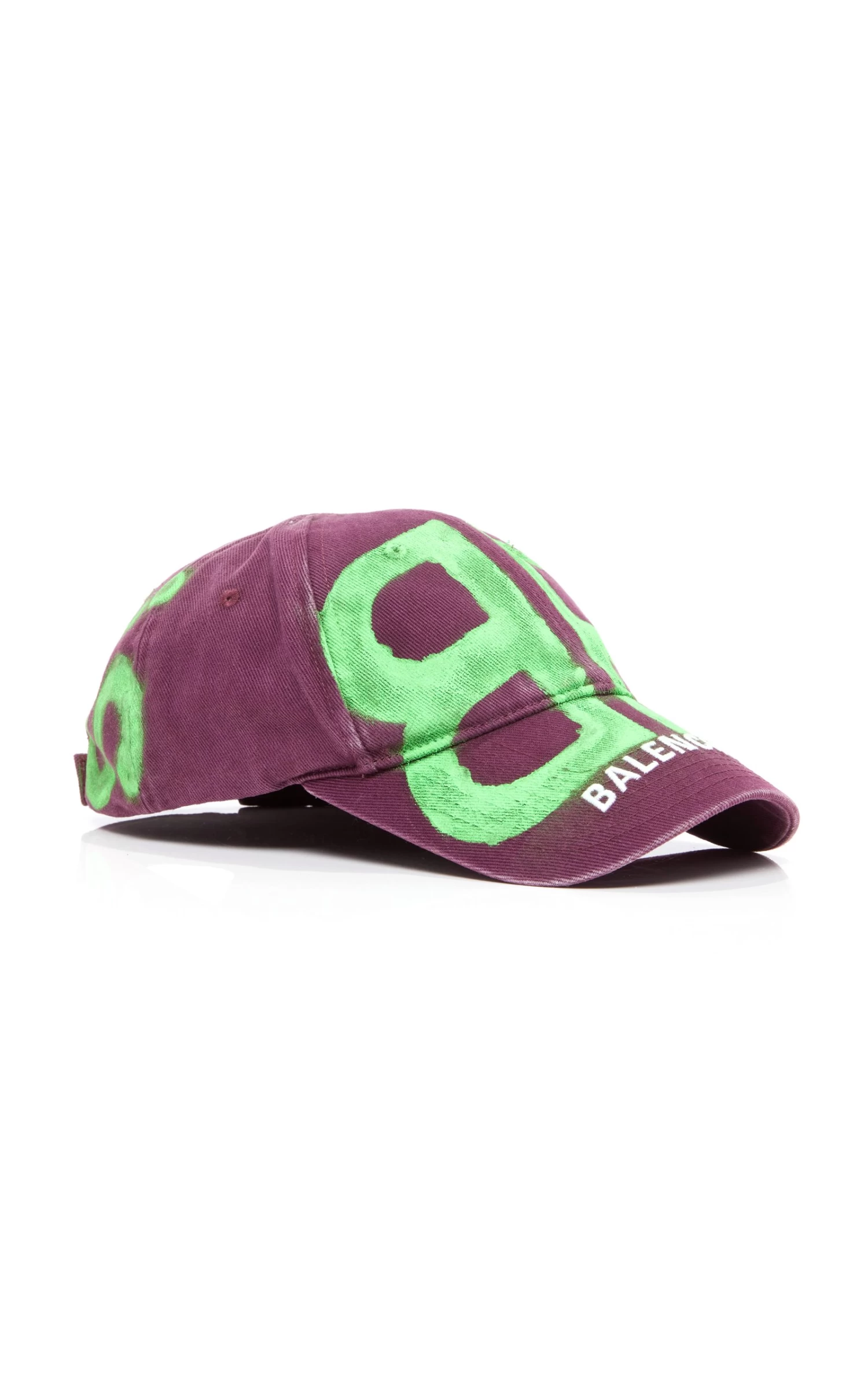Balenciaga shows off its latest ‘BB’ logo on this off-duty staple. It’s made from robust cotton drill that’s faded at the natural points of wear and spray painted with the house’s emblem for a cool graffiti effect. Pull your pony through the back loop.