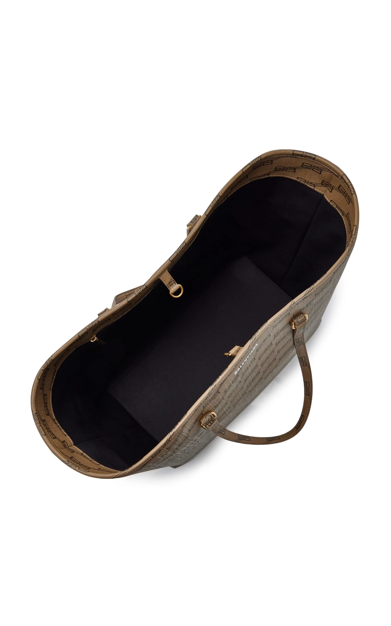 Inspired by classic shopping bags, this ‘Signature’ tote bag is made from monogram coated canvas with faux leather trim. Secure your smaller belongings in the interior zipped pocket.