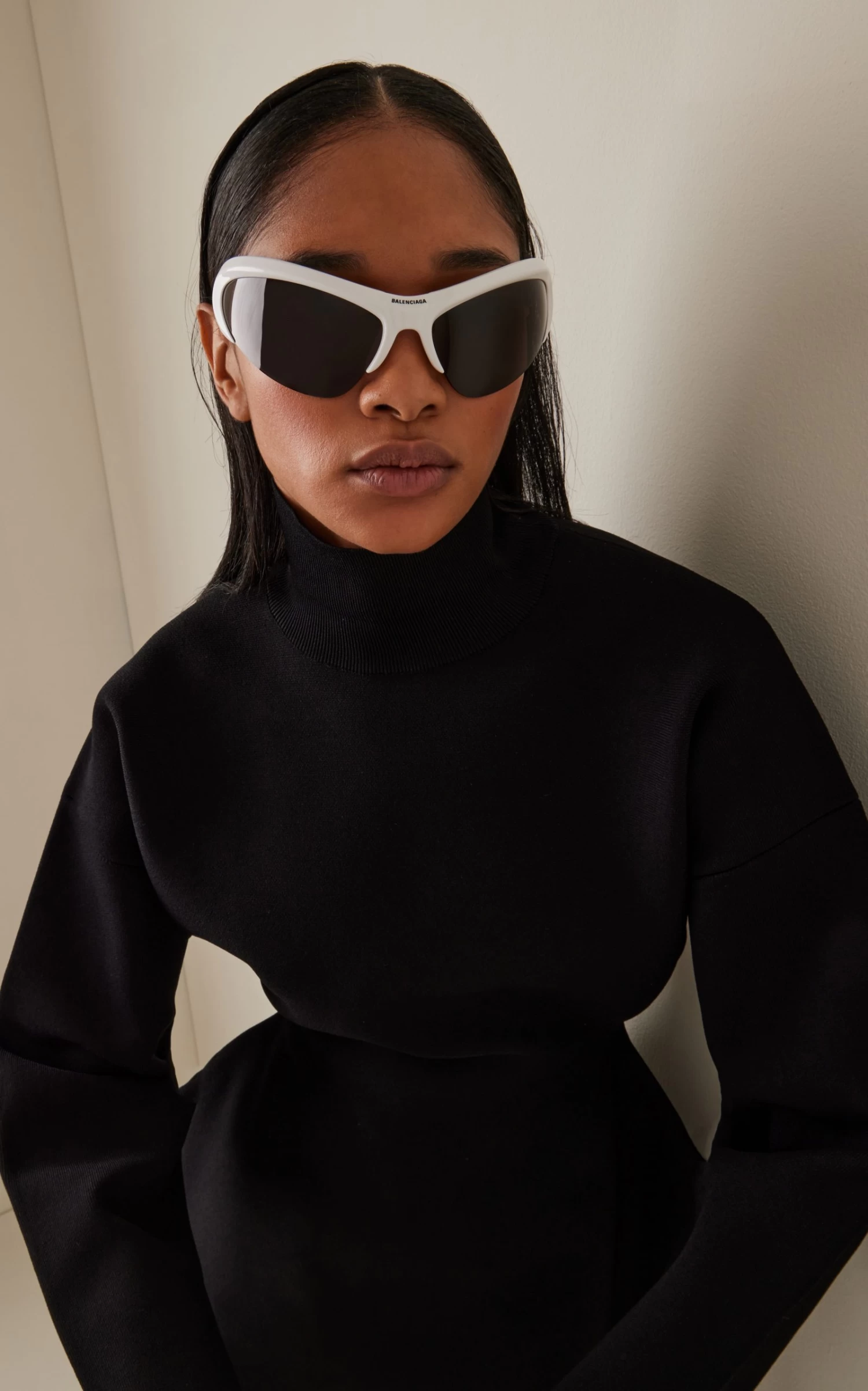 Broadly featured in the Fall 22′ fashion show, these sunglasses have the futuristic feel that’s defined the label as of late. Made in Italy from hard-wearing acetate fitted with lenses, they trace the shape of your face. Store them in the accompanying case to keep them pristine.