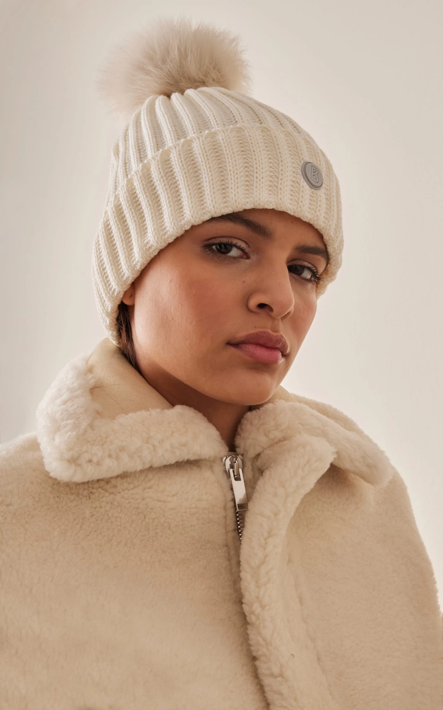 Made from a ribbed wool blend knit, this beanie has a wide cuff and it’s topped off with a fluffy fur pom pom. Wear yours on or off the slopes for extra warmth.