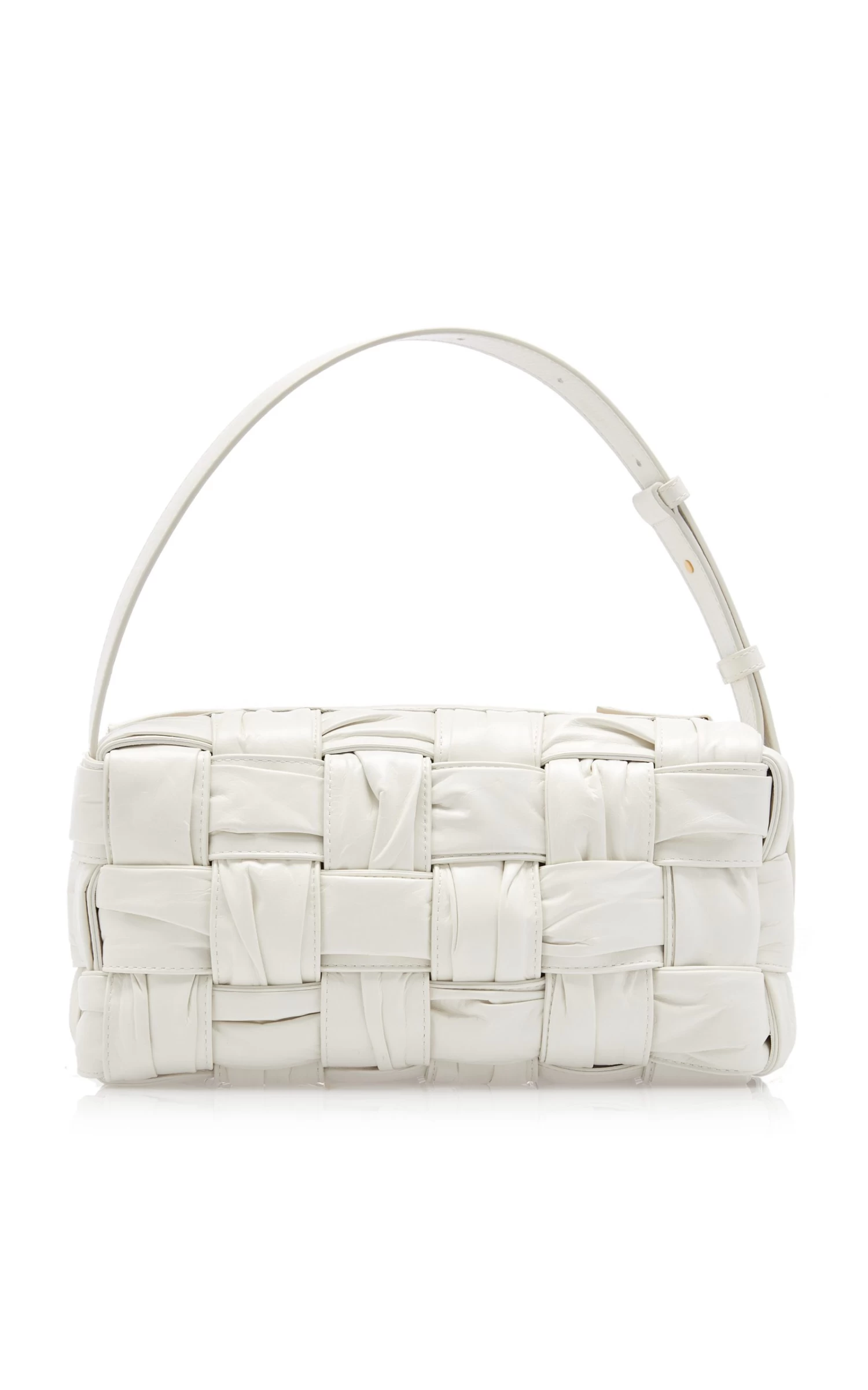 Leaning into the brand’s foundations, he delivers new iterations of house signatures, like the intreccio weave, as seen on this ‘Brick’ version of the ‘Cassette’ bag. It’s made from calfskin leather designed for a paper-like look and topped with an adjustable strap. Fill it with the essentials for the day.