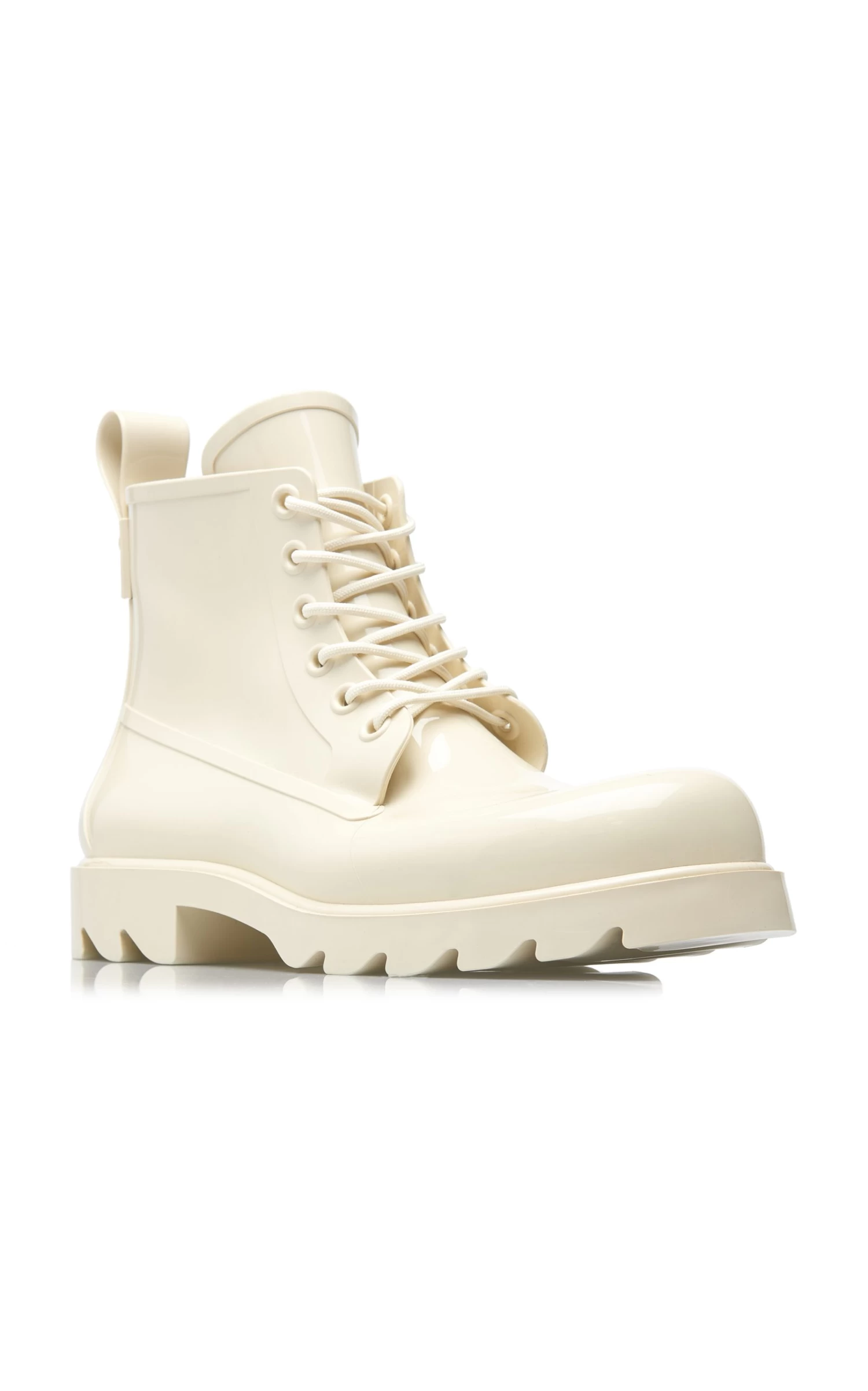 Ideal for inclement days, these lace-up boots are made from spongy matte rubber (that’s oh so comfortable) set atop thick lug soles for traction. Pair with the ‘Pouch’ bag in a matching shade.