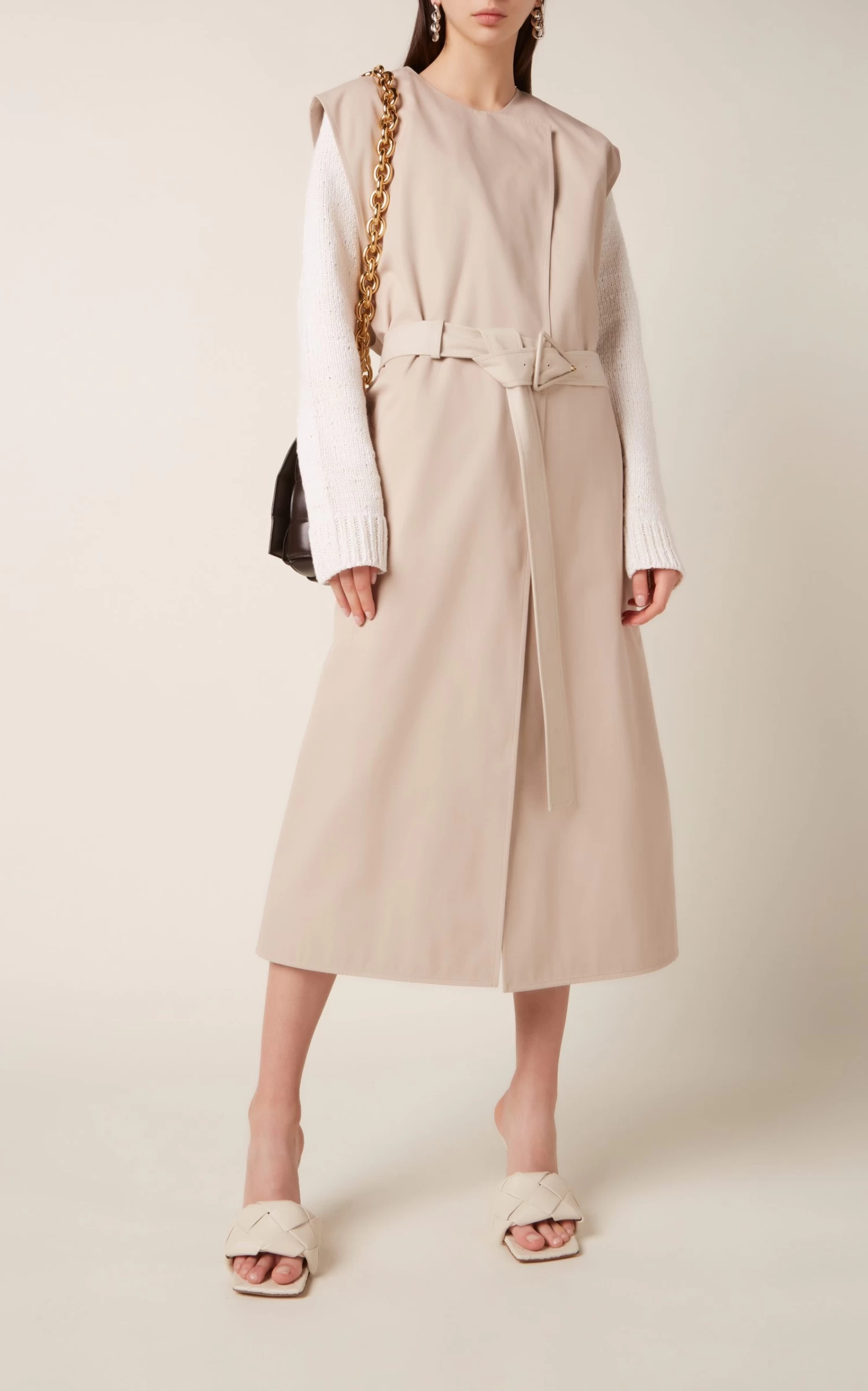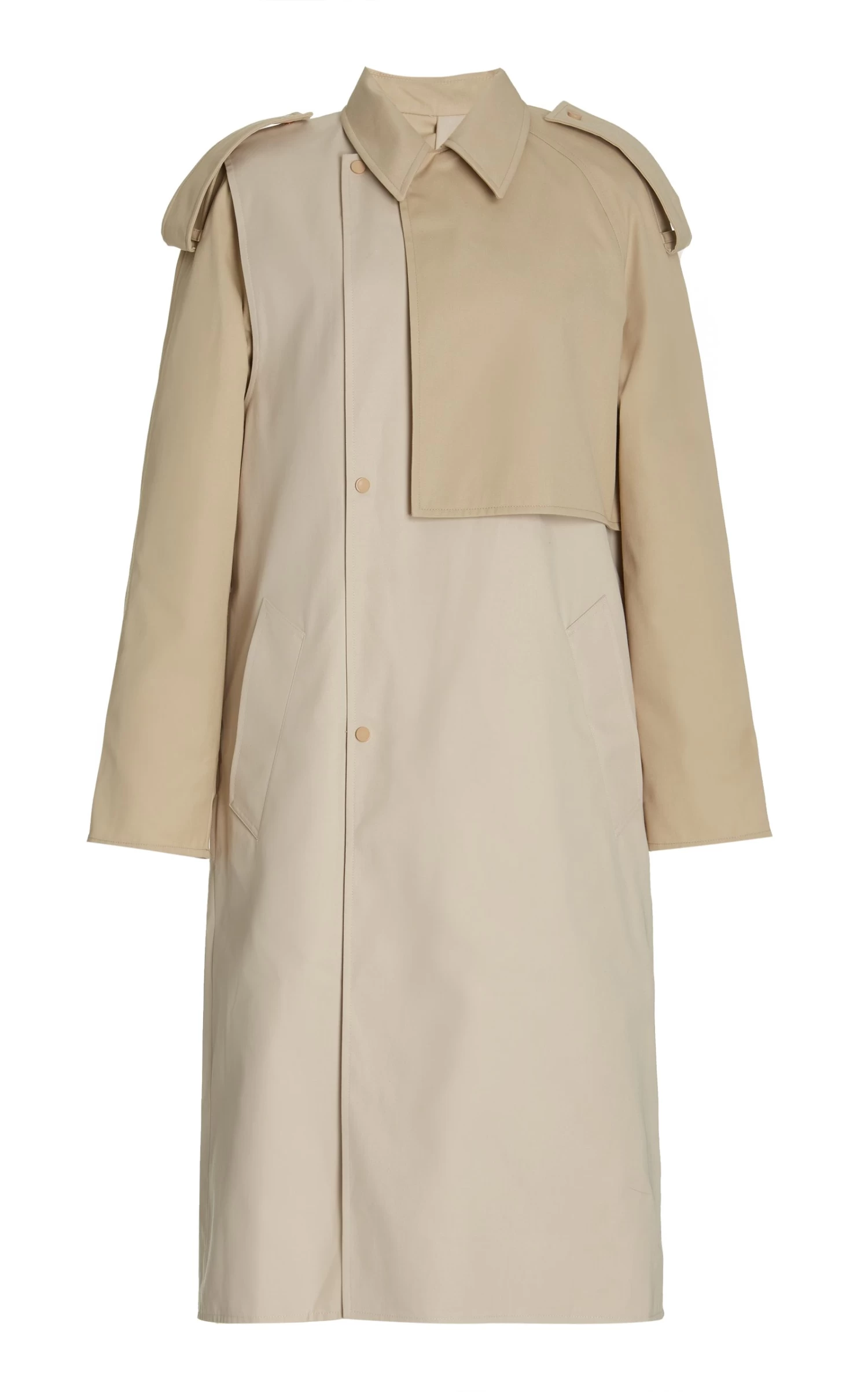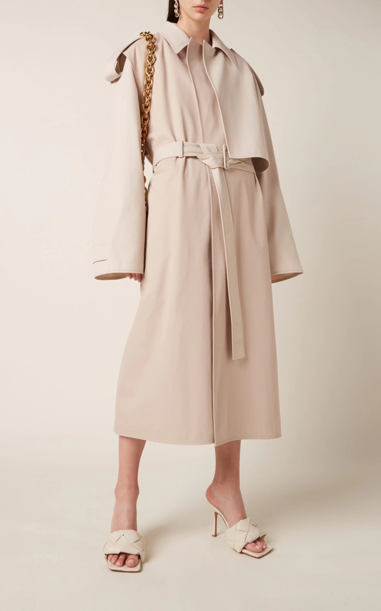 Bottega Veneta is constantly reinventing classic silhouette; take note of this trench coat designed with removable sleeves. Made from a blend of neutral cotton into a loose-fitting shape, this outerwear option is both parts traditional and innovative. Cinch your figure with the waist belt.
