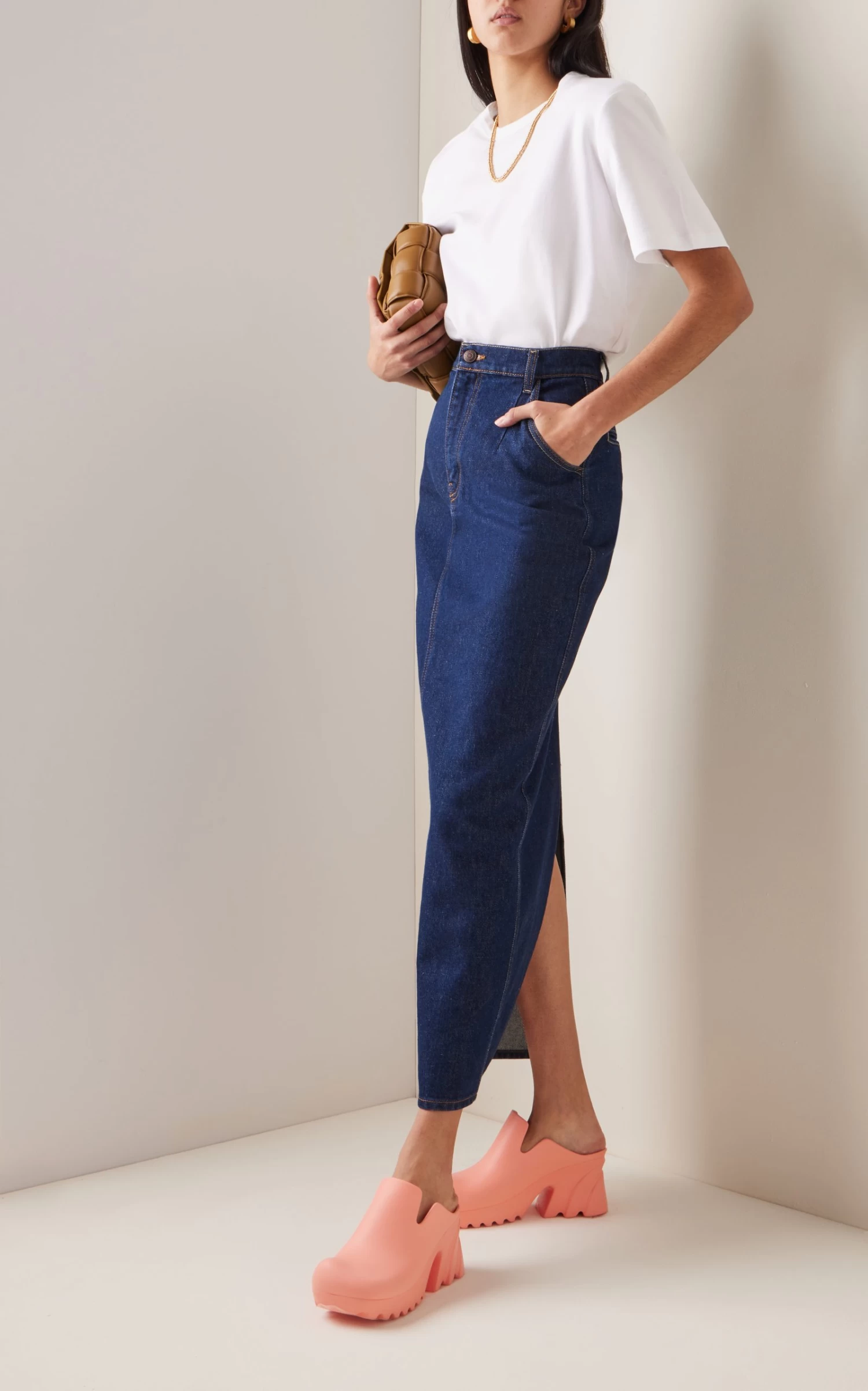 Building on the now-signature stompy boot, these mules are made from spongy rubber (that’s oh so comfortable) set atop on-trend thick rubber soles. Pair with the ‘Pouch’ bag in a matching shade.