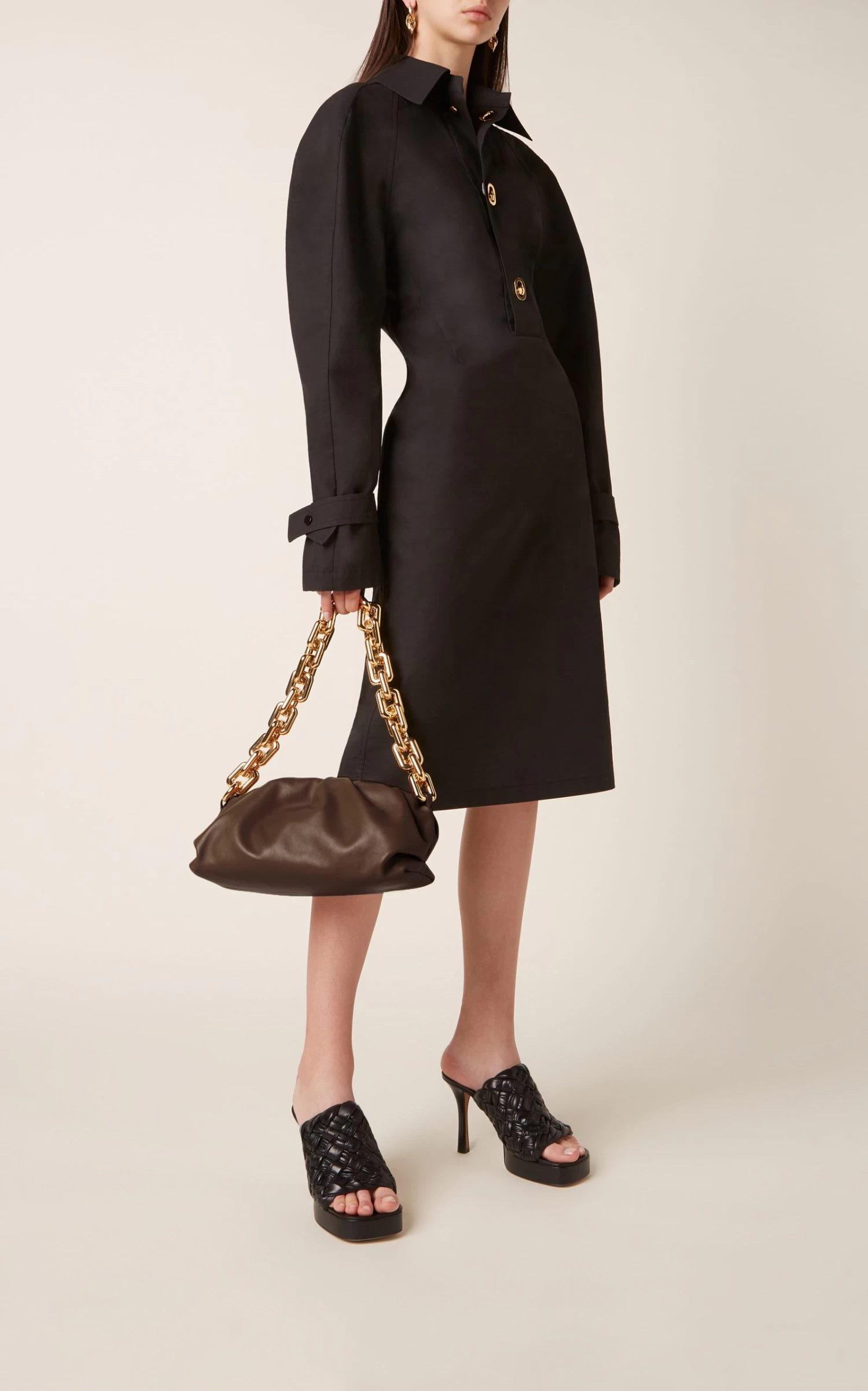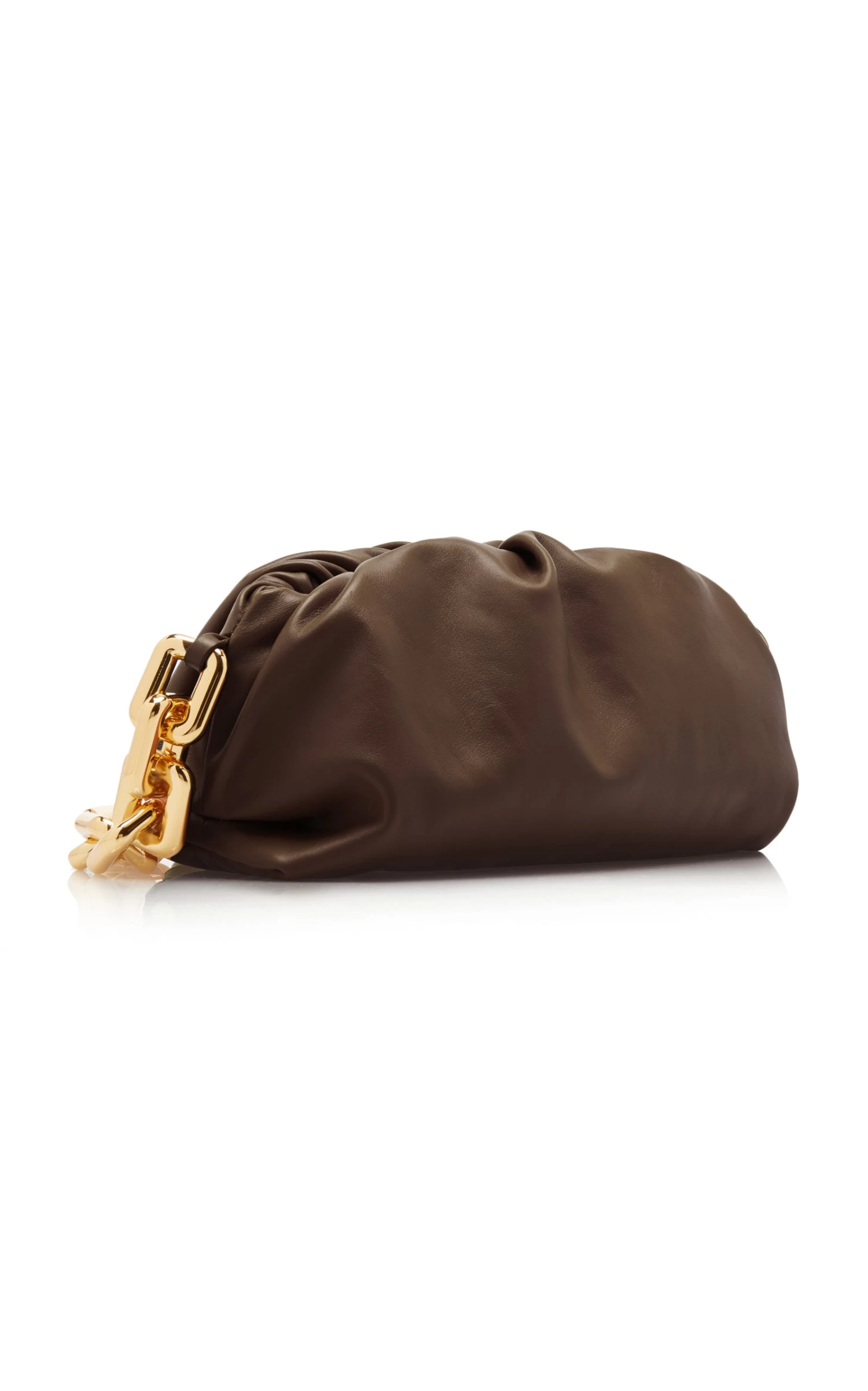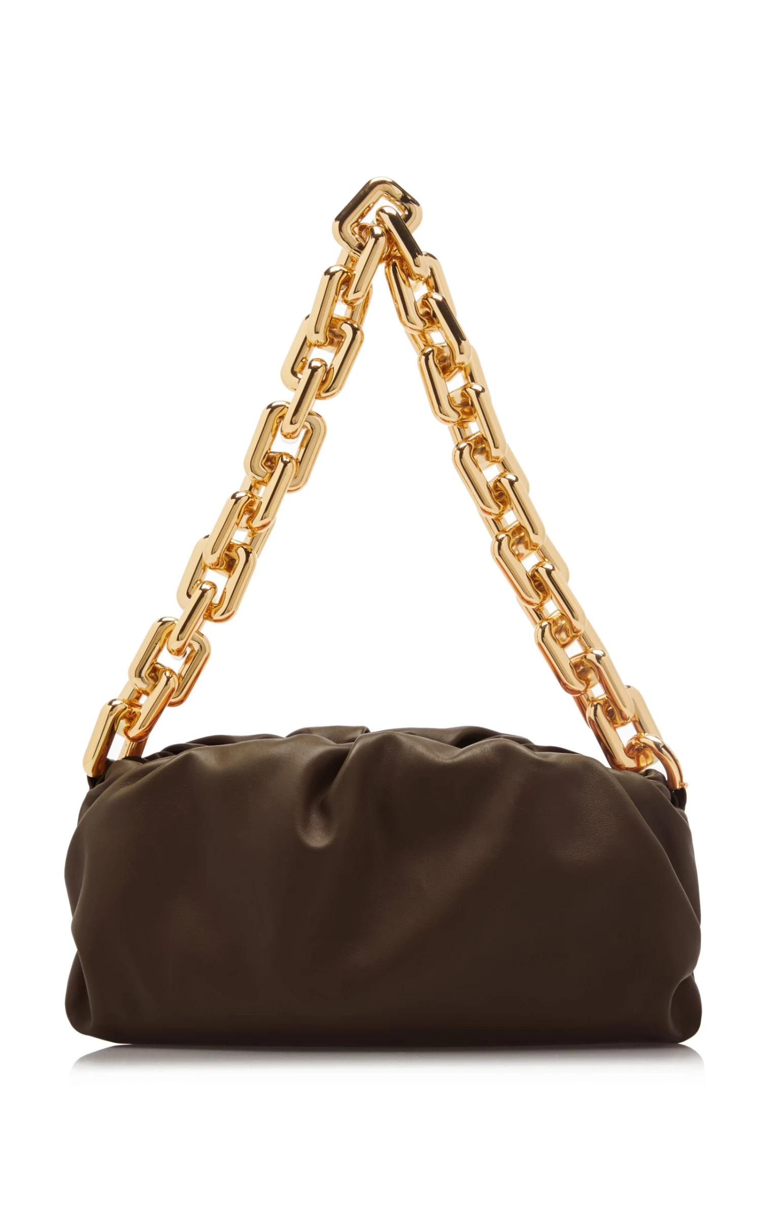 A take on the label’s signature ‘The Pouch’ clutch, Bottega Veneta’s bag is crafted from soft folds of lambskin leather in a slouchy, gathered design. The piece is distinguished by its chunky gold-tone chain, which can be worn doubled-up to carry yours in-hand.