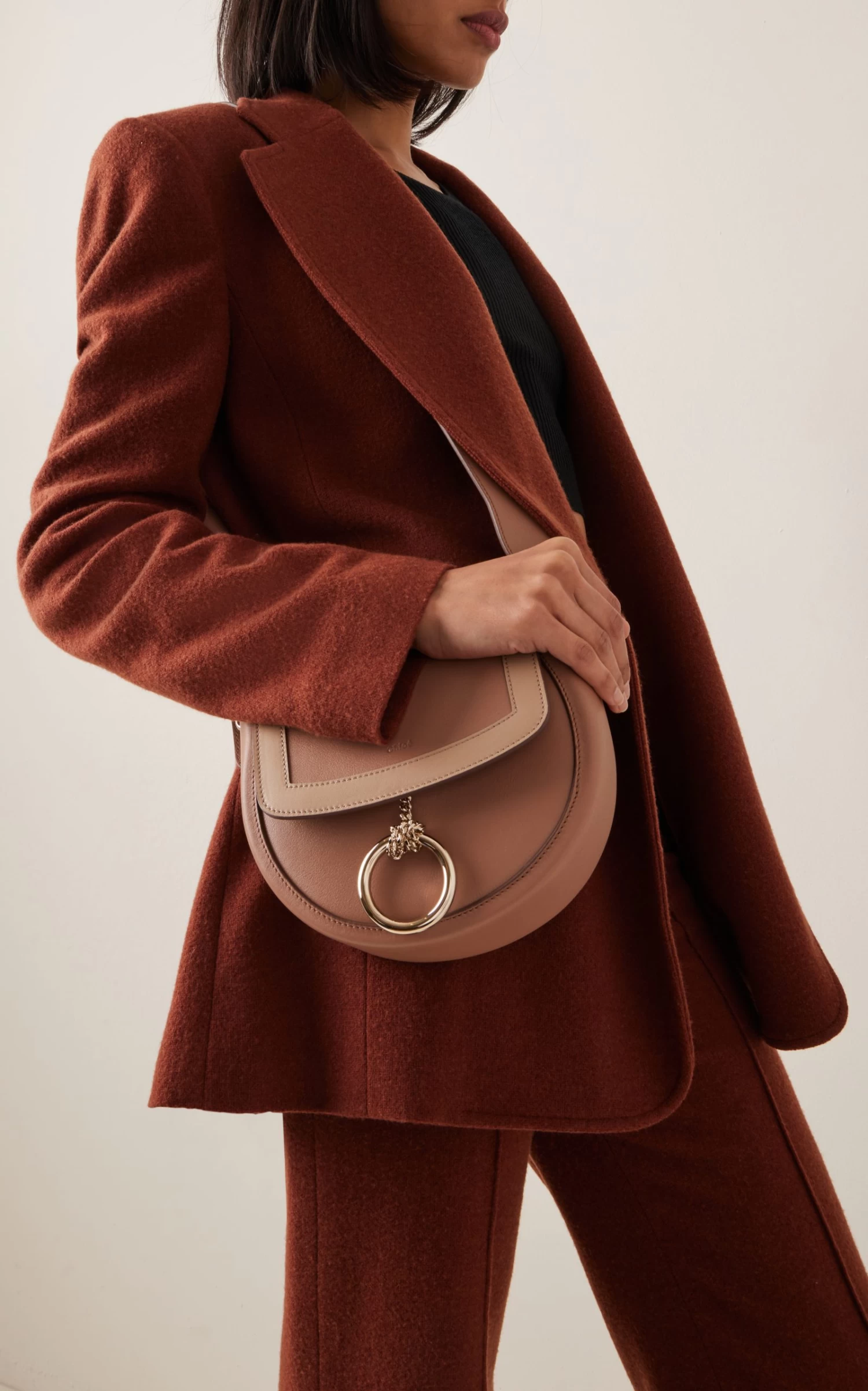 Exuding a bohemian attitude, the ‘Arlène’ bag has a round shape made from smooth calfskin with signature gold-tone hardware inspired by vintage Chloé bags. The flap opens to reveal a roomy main compartment and a zippered compartment.