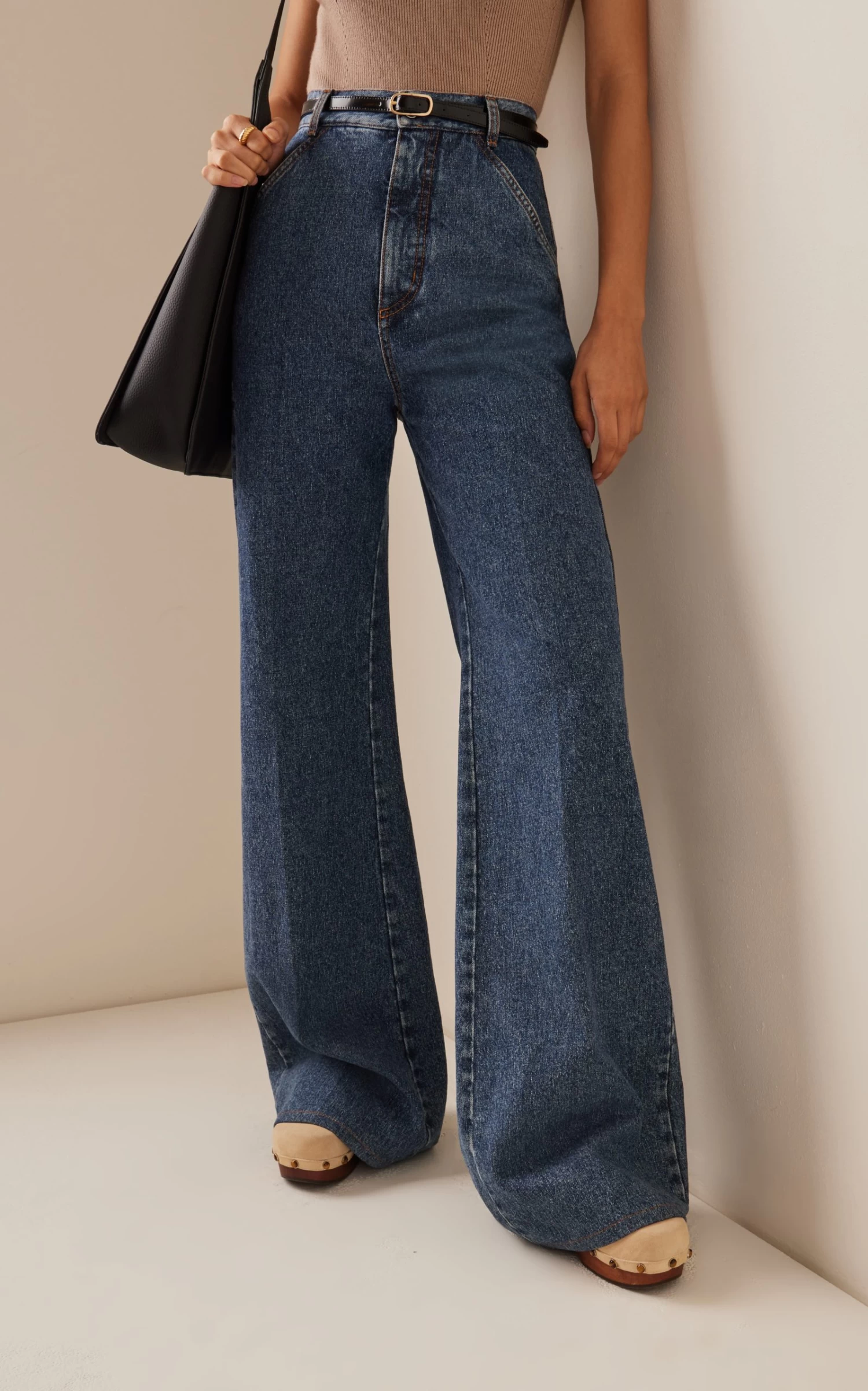These wide-leg jeans are high rise with a slightly flared silhouette. Wear yours with a leather belt and tucked in top for an effortless weekend look.