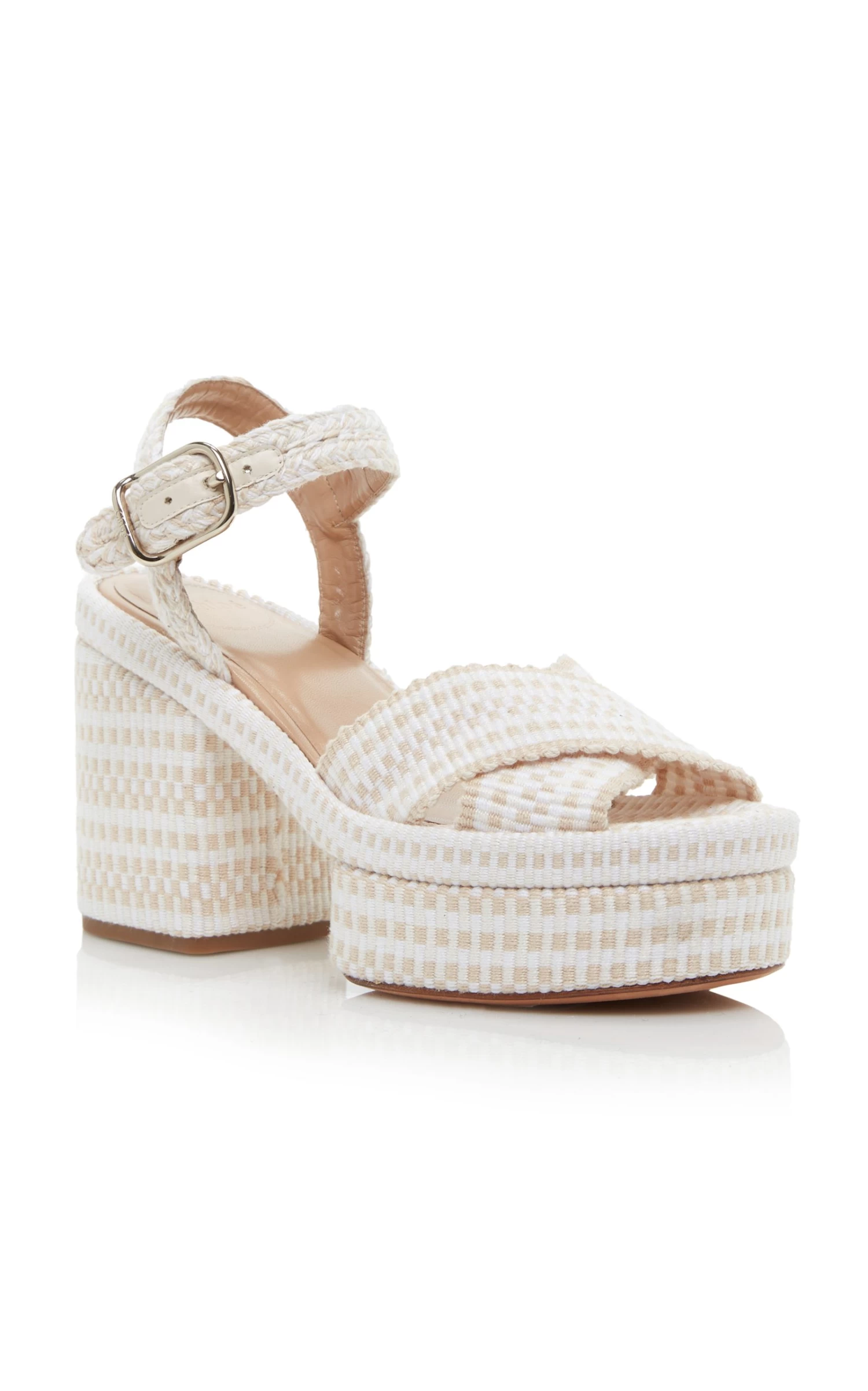 The ‘Odina’ sandals are inspired by a drawing from creative director Gabriela Hearst at the age of 17. Now in a summery woven construction, this iteration has a sturdy platform sole and an elevated block heel.