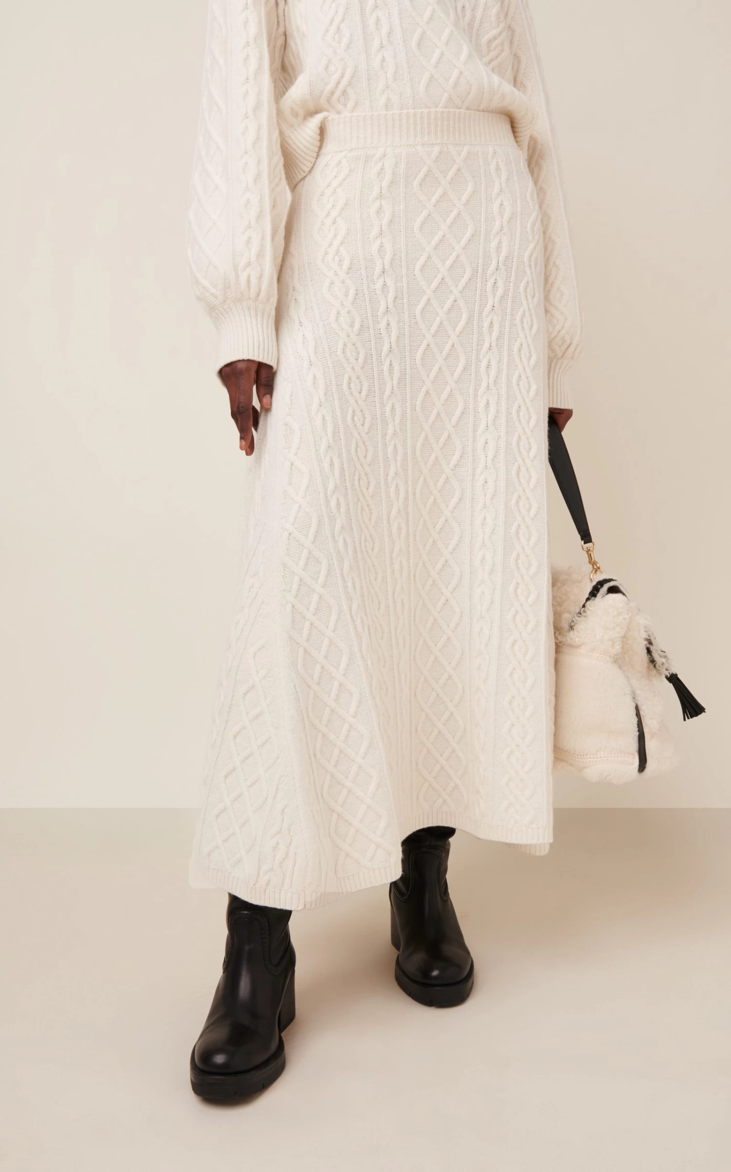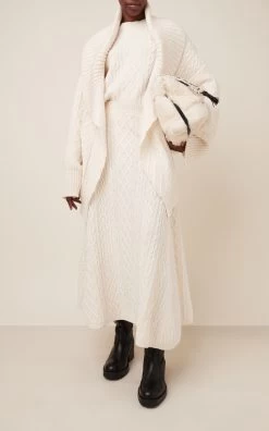 Chloé Wool-Cashmere Cable Knit Midi Skirt