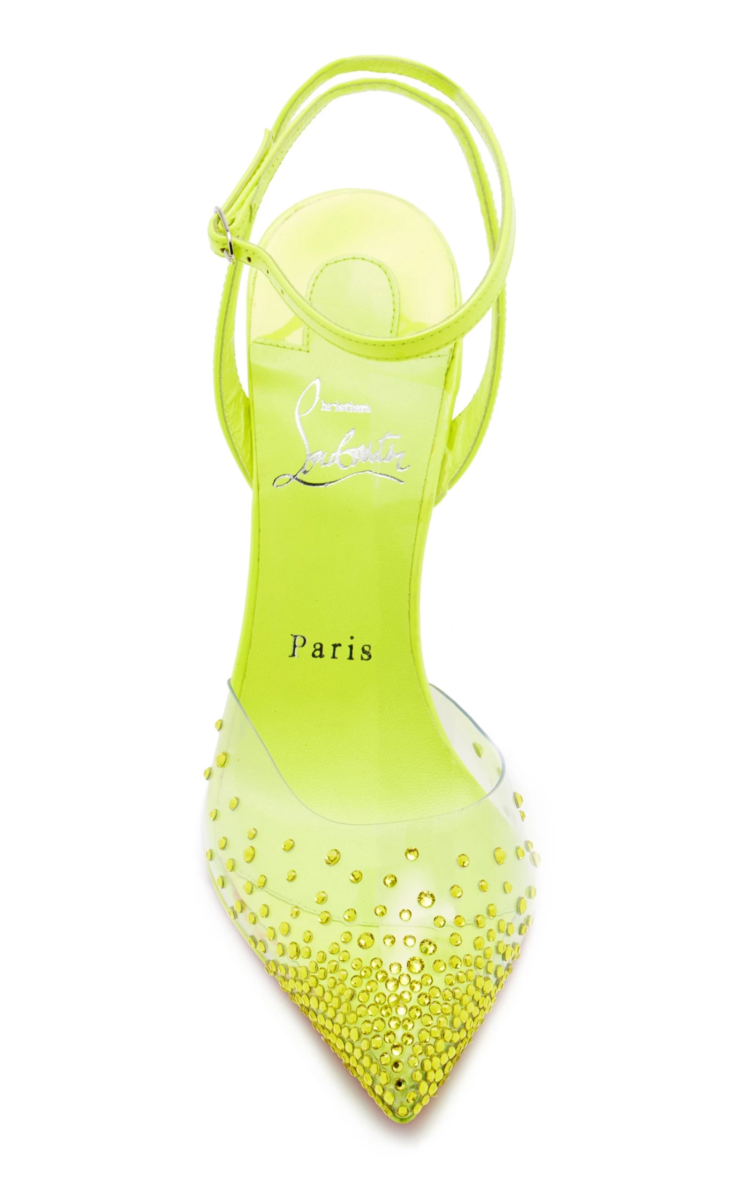 Crafted of patent leather and crystal-embellished PVC, these ‘Spikaqueen’ pumps have a pointed toe with ankle straps. Wear yours for a glam pop of color.