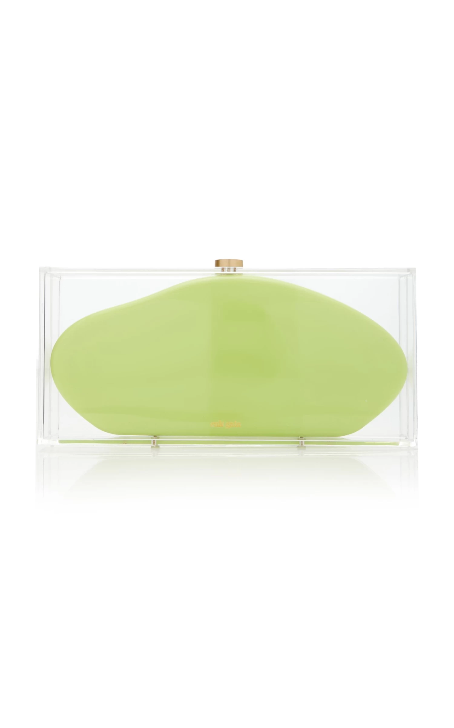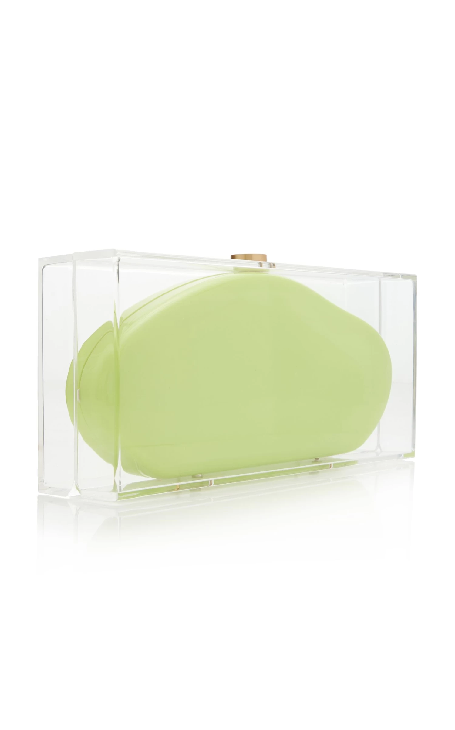 The striking ‘Annika’ clutch is sure to make all heads turn. A clear acrylic box encases an inner bag where you can stash all your personal items. A true objet d’art.