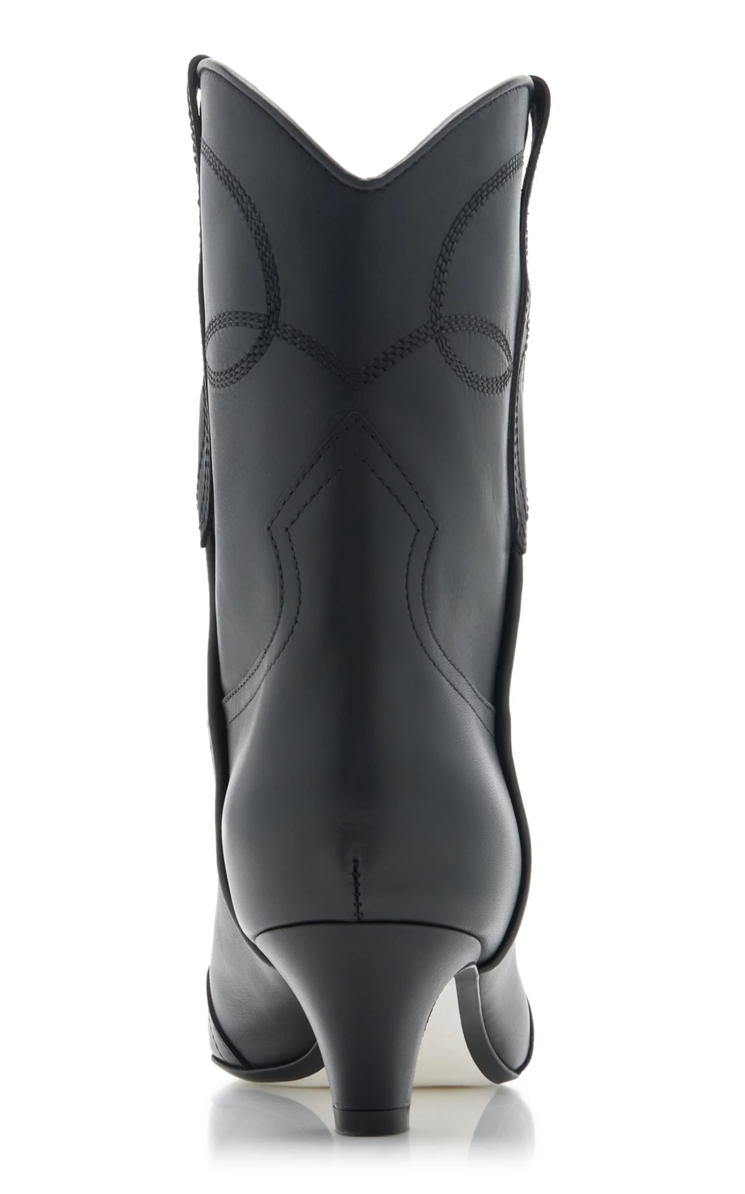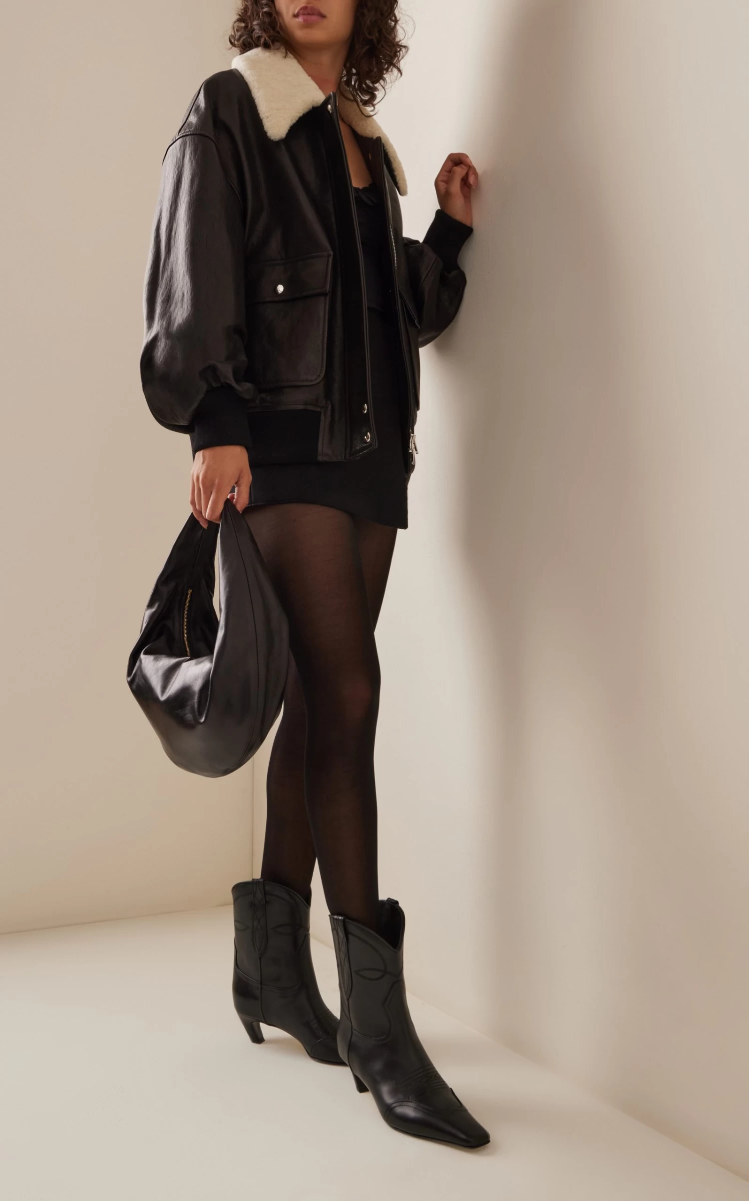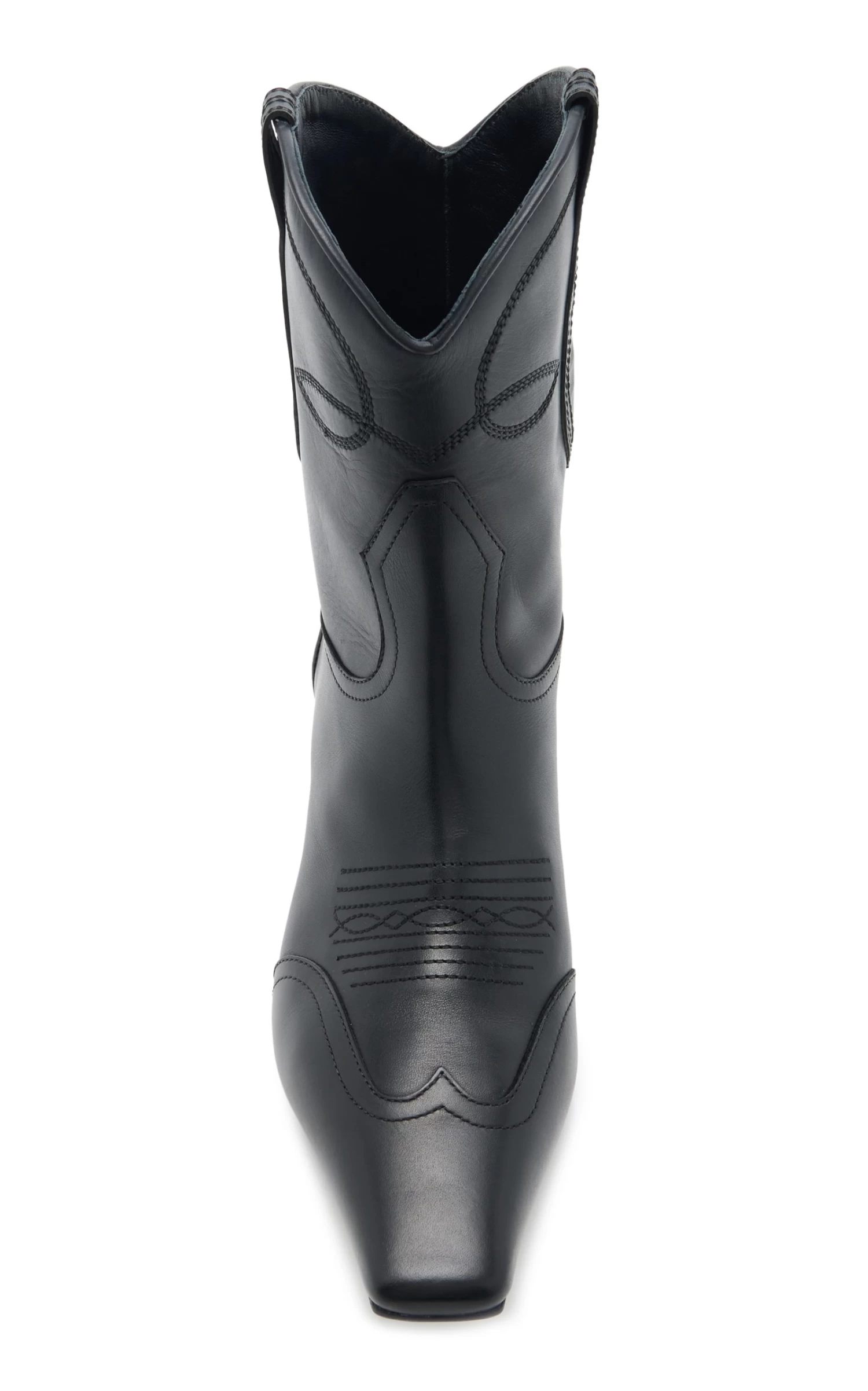 The ‘Dallas’ ankle boots are crafted from smooth lambskin leather, detailed with elongated square toes, western-inspired top-stitching and a curved heel. Pair yours with a complementing leather jacket for an elevated day look.
