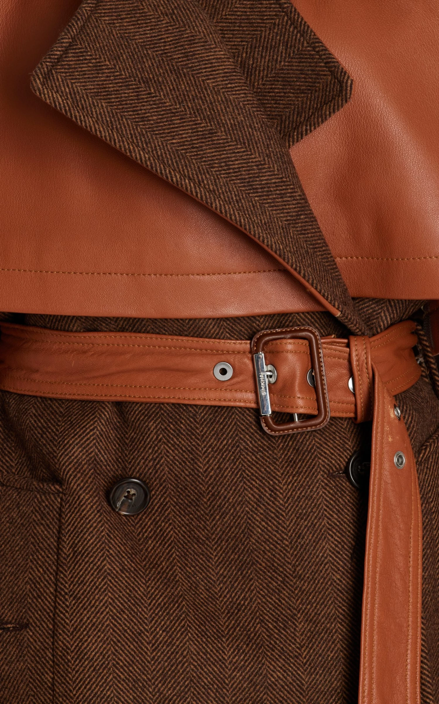 The ‘Doni’ coat has a dual-tone trench design made from vegan leather and belted at the waist. Try it by itself with chunky platforms and a slouchy tote.