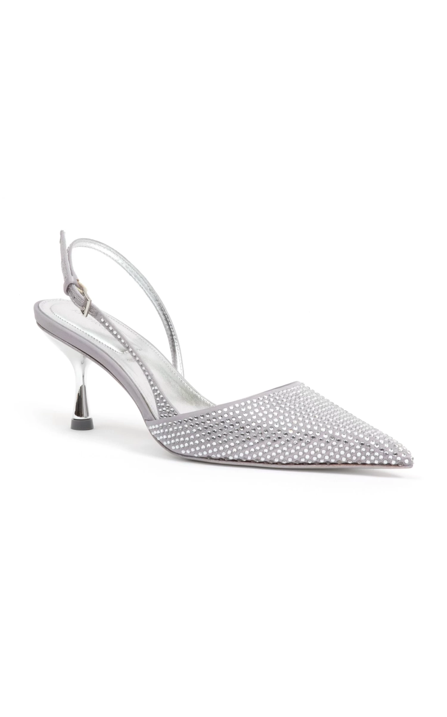 The ‘Dylan’ slingback pumps have a pointed-toe silhouette covered in crystals and set on a lucite midi heel. The lightly cushioned soles add a dose of comfort.