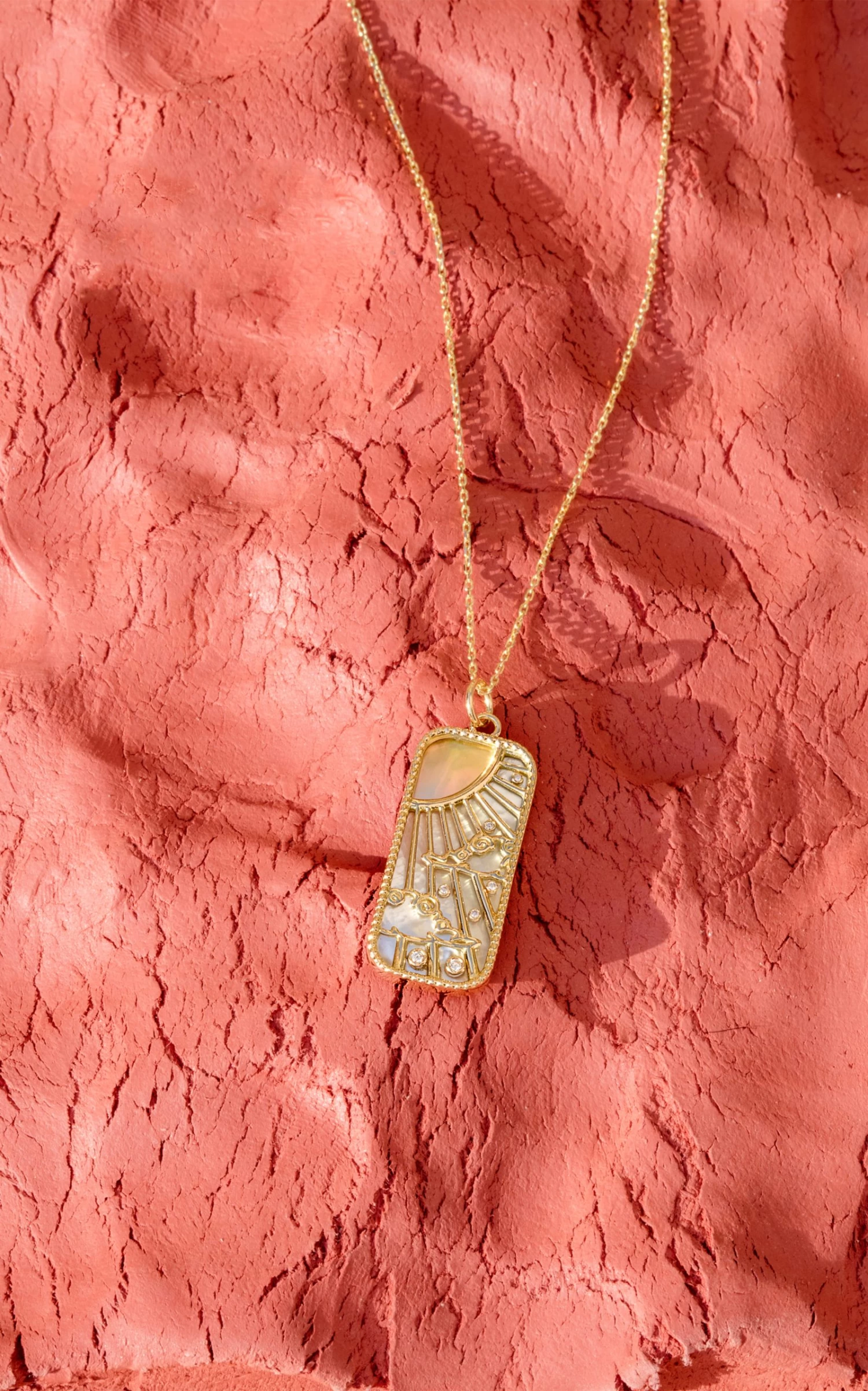 Made of 18k yellow gold, this chain necklace features a pendant with diamonds and mother of pearl stones. Wear yours with others from the brand for a layered look.
