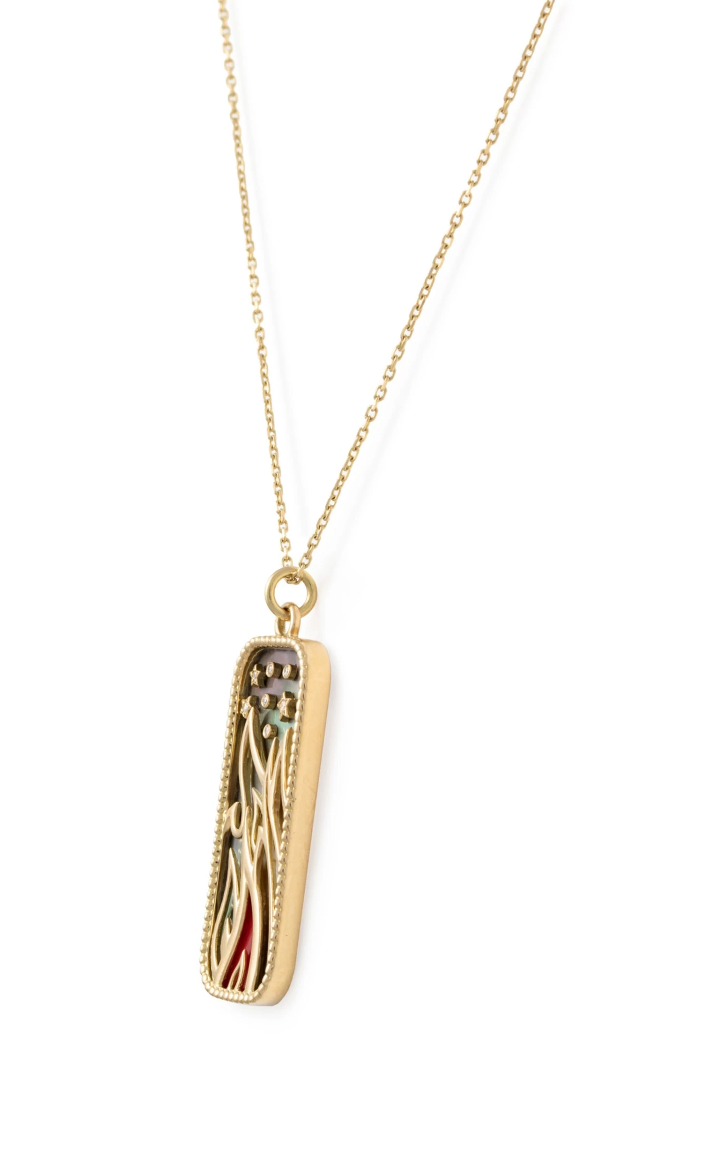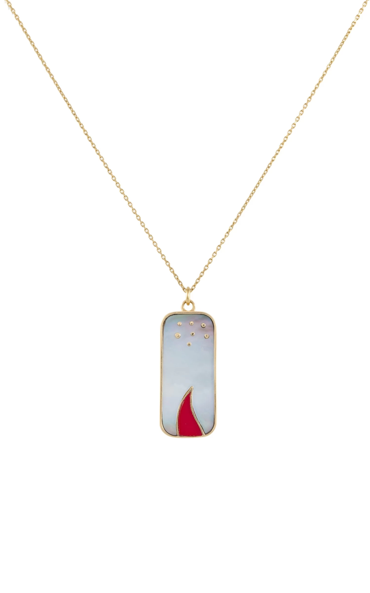 Made of 18k yellow gold, this chain necklace features a pendant with diamonds, mother of pearl and coral stones. Wear yours with others from the brand for a layered look.