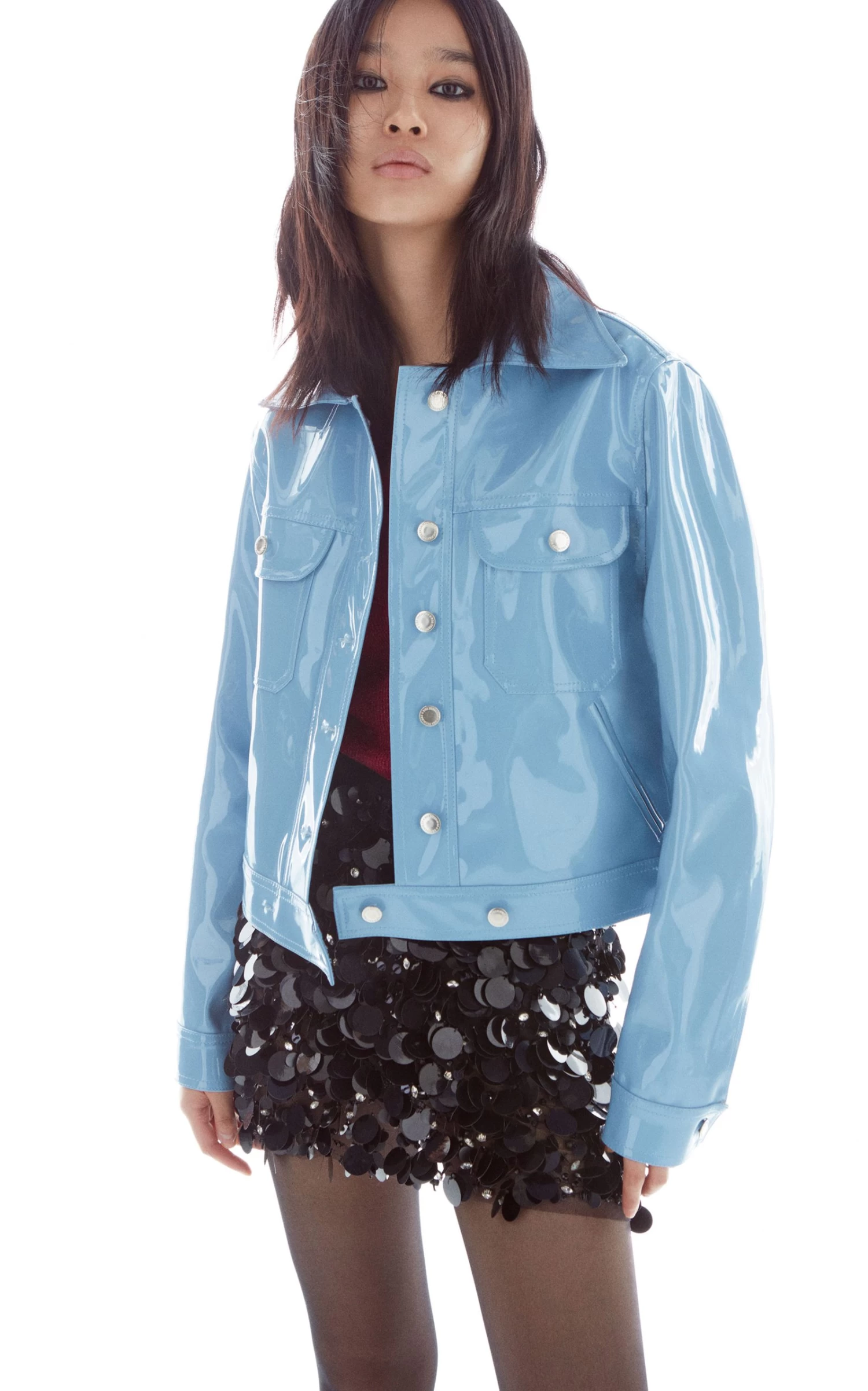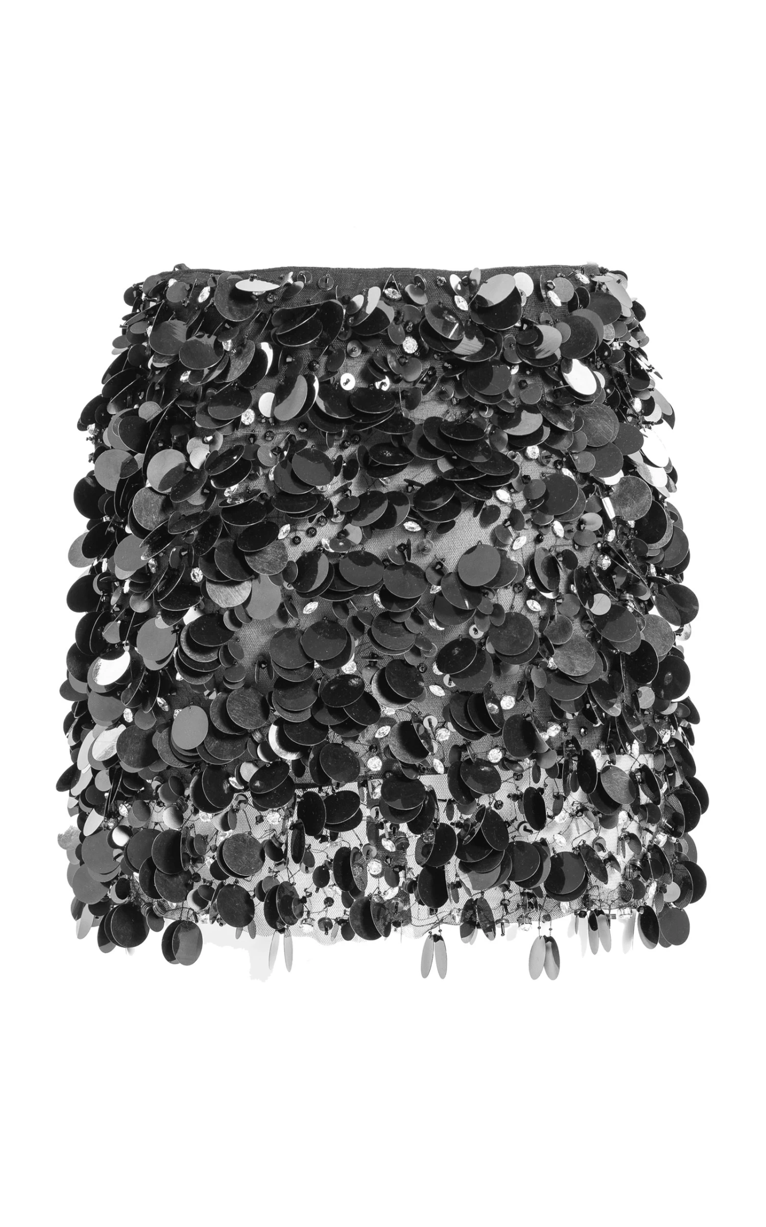 Made from nylon, this short mini skirt is embroidered throughout with light-catching paillettes. Wear yours with a turtleneck and sandals for a cool cocktail look.