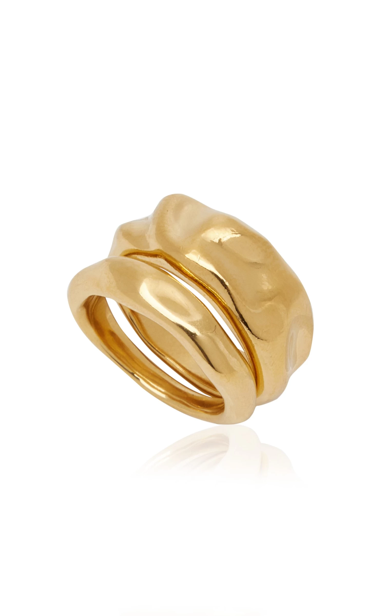 This pair of gold rings can be worn stacked or separate. Style yours with a necklace from the brand to dress up a day to night look.