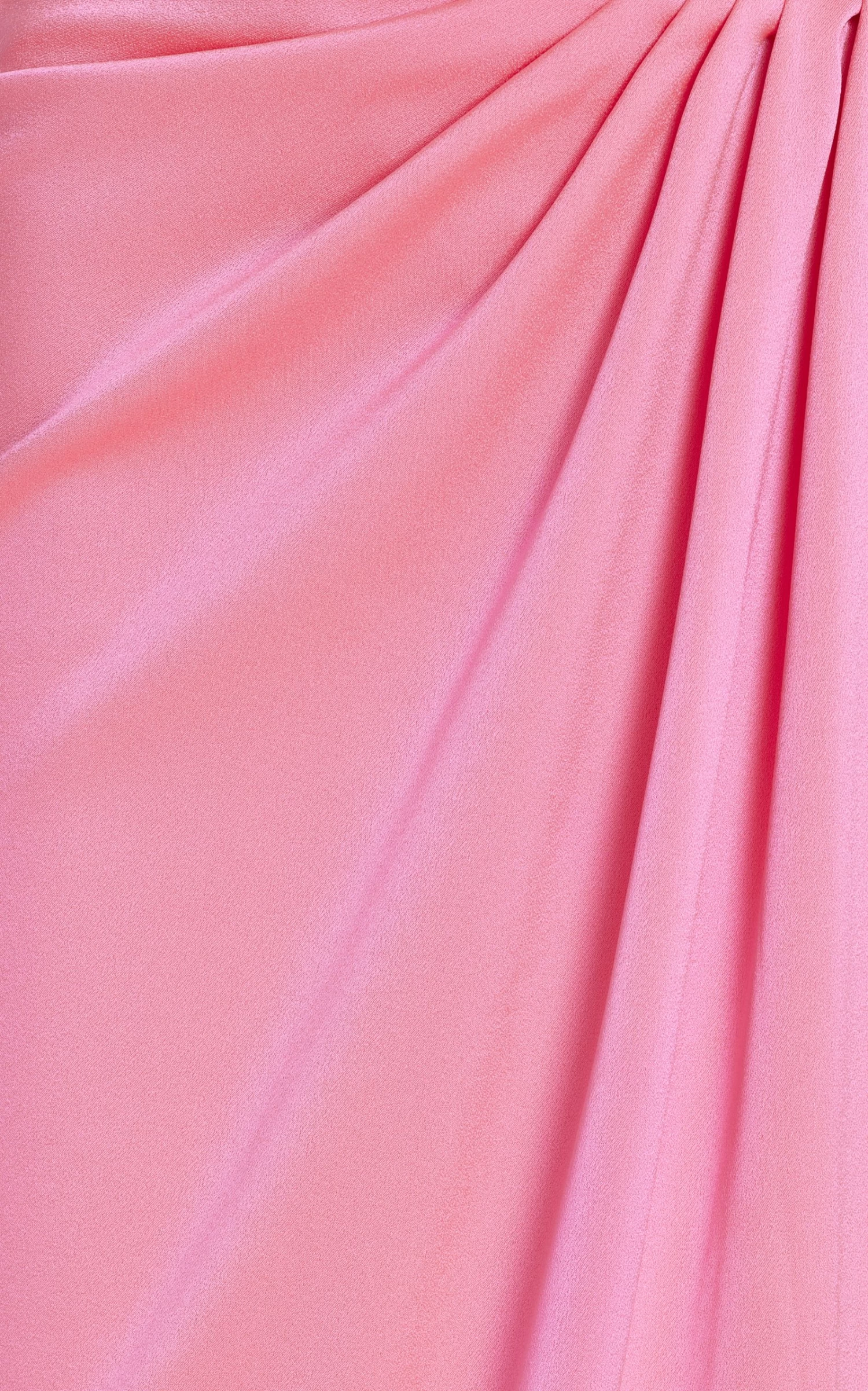 This draped satin crepe skirt is asymmetric and features a high side slit and low rise waist. Wear yours with a strapless top and barely-there sandals for a look inspired by the brand.