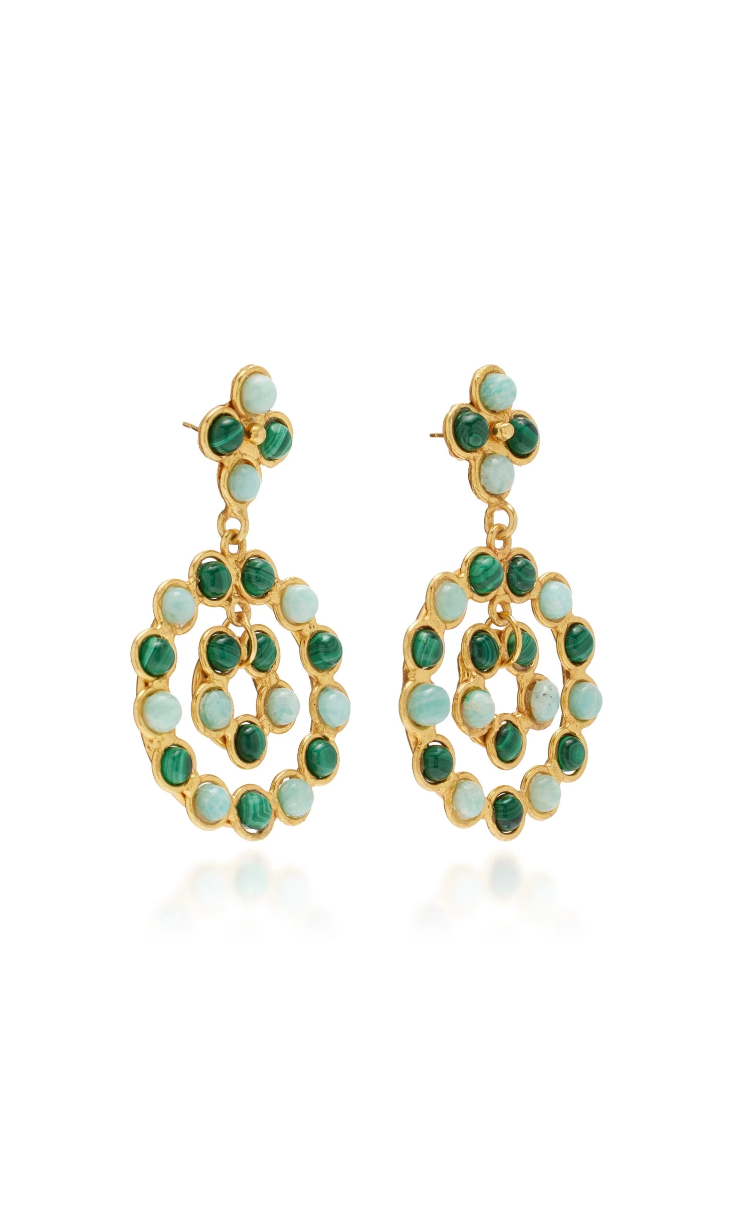 Flower Candies 22K Gold-Plated Malachite And Amazonite Earrings