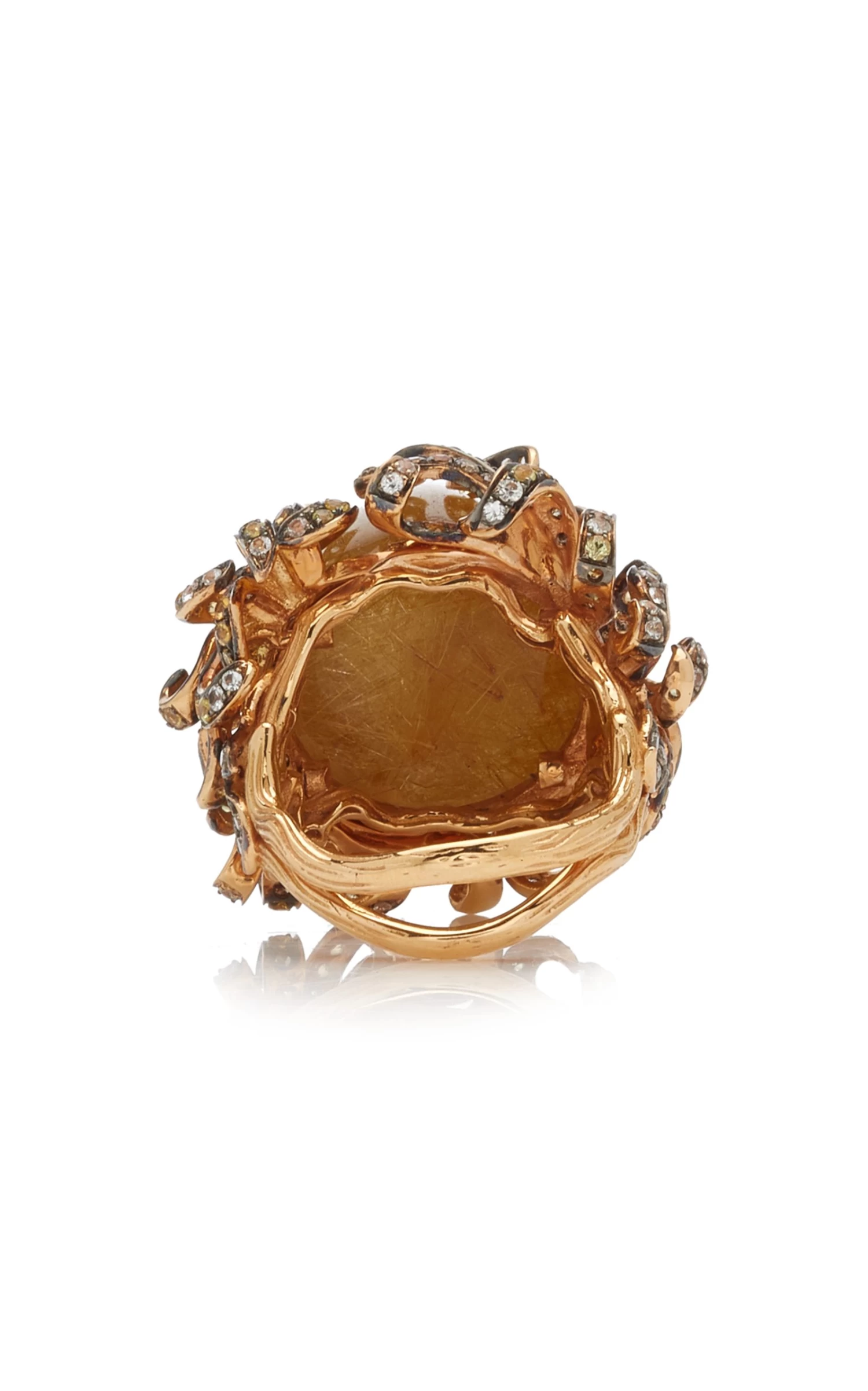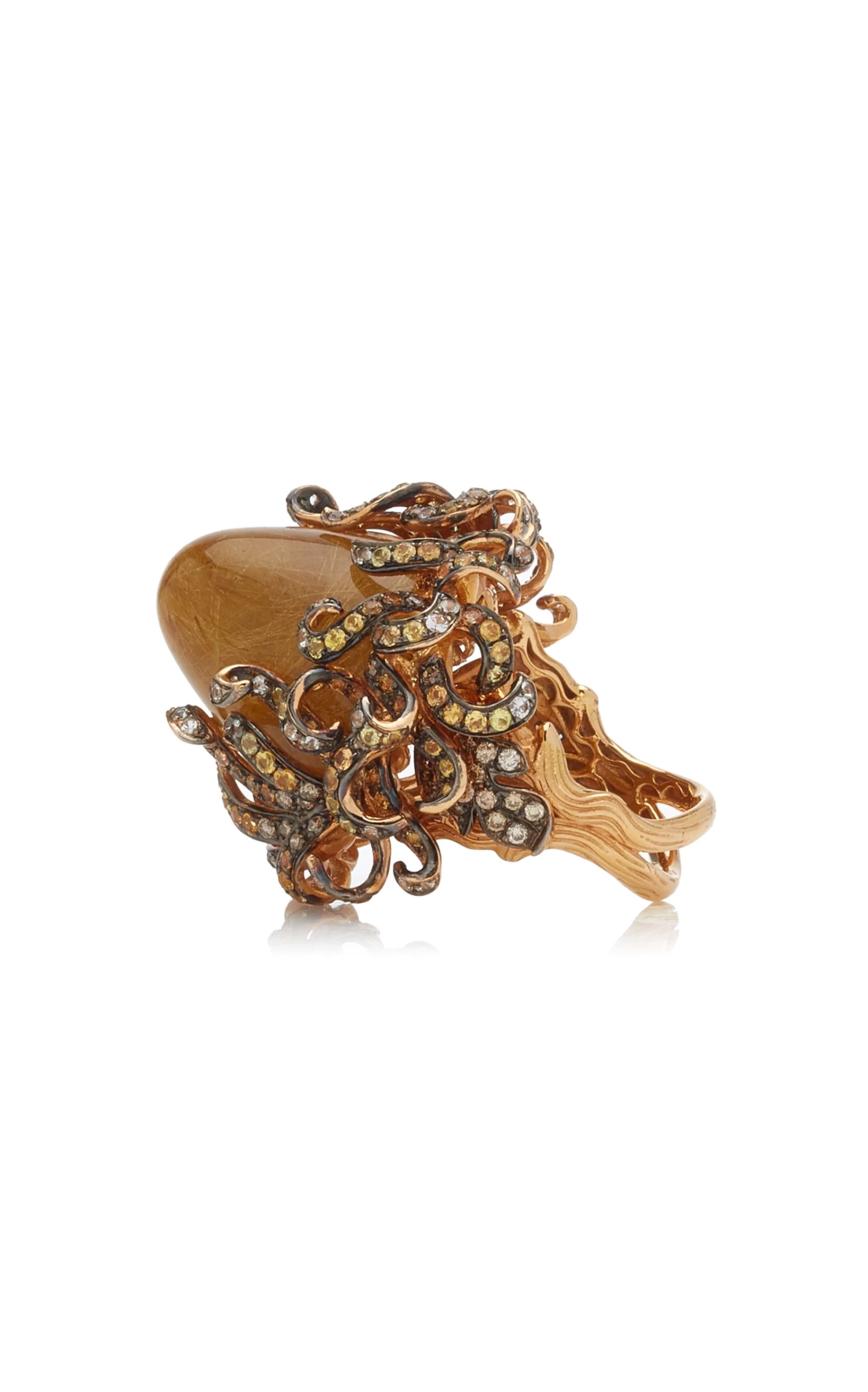 Not for the faint of heart, Wendy Yue’s pieces are collected by jewelry mavens who prize artistry and creativity above all else. Cast from 18k rose gold, this ‘Foliage’ ring features a stunning rutilated quartz surrounded by multi-hued sapphires and champagne diamonds. You’ll need to further embellishments with it on your finger.