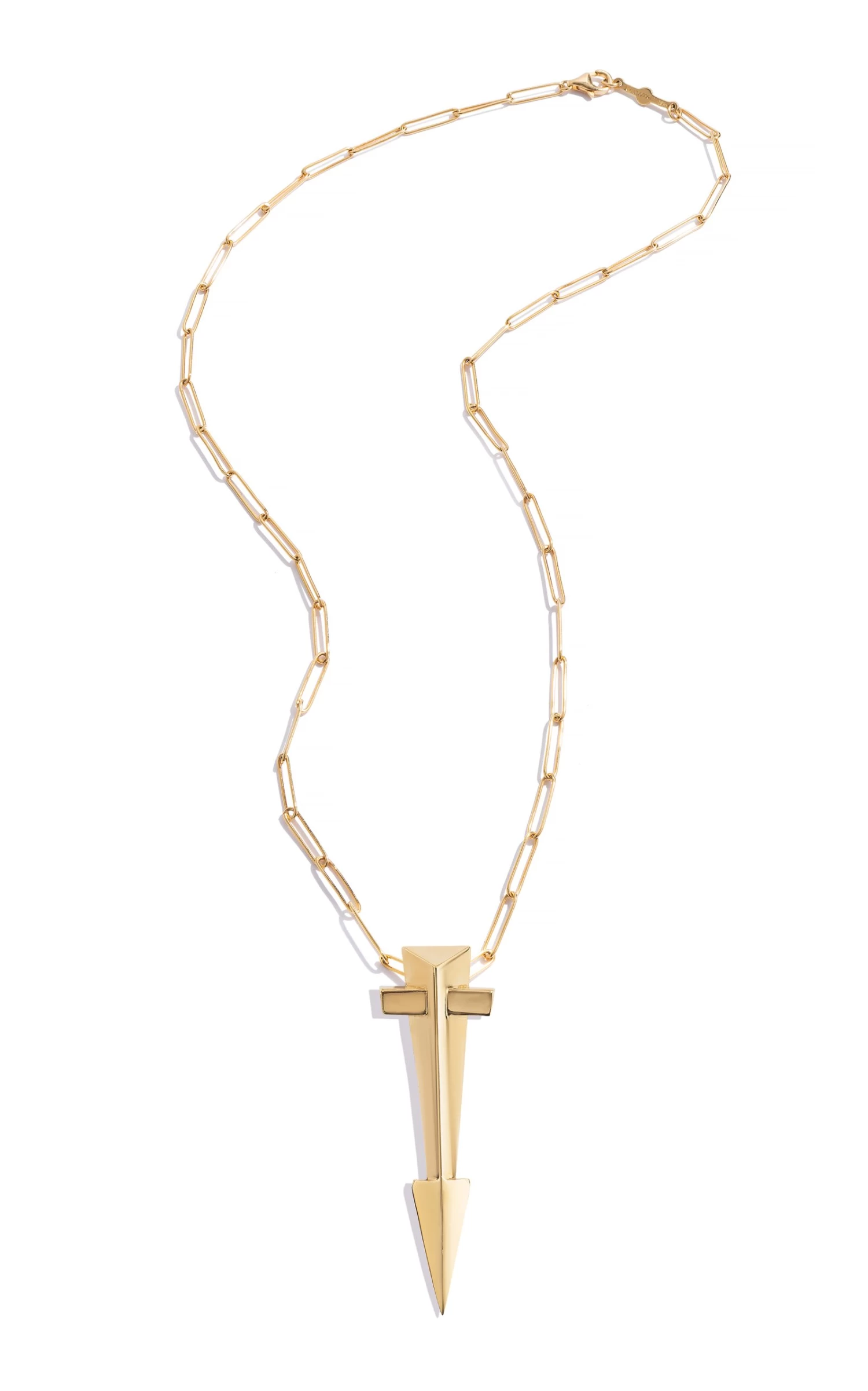 From the ’70s-inspired ‘Revival’ collection, the ‘Freccia’ necklace features an arrow pendant cast from 18k yellow gold with a high polish finish. Wear it layered.