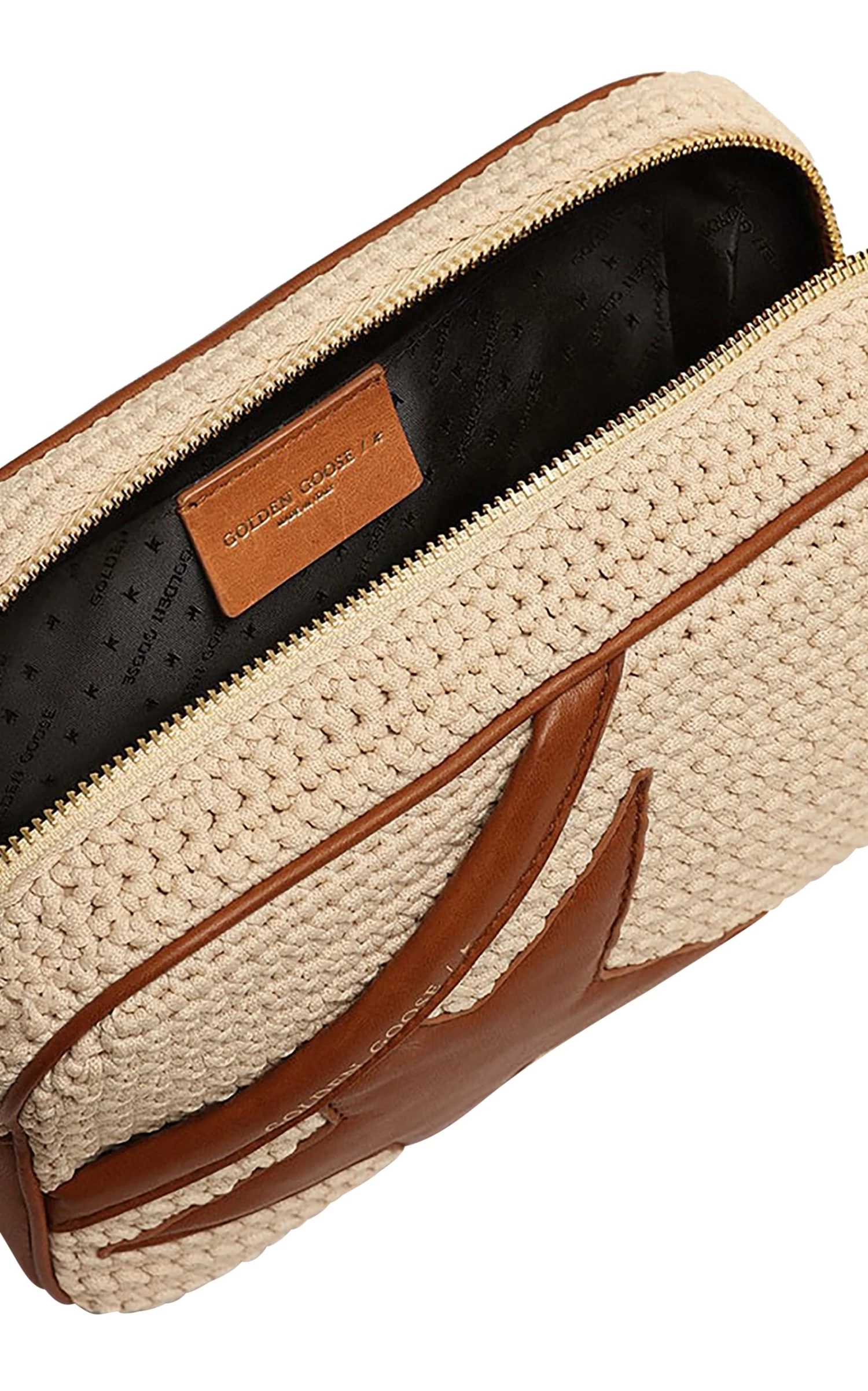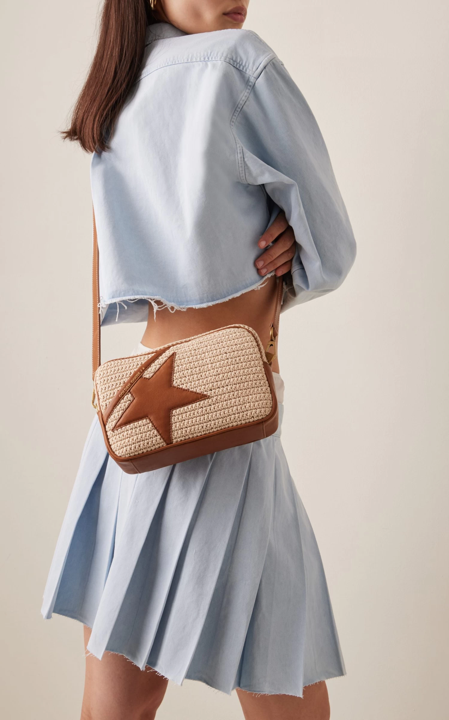 This crossbody bag is crafted from summery raffia detailed with the label’s signature ‘Star’ stitch in leather. Fit with a secure zip across the front, this style opens to a pocketed interior sized to hold your daily essentials.