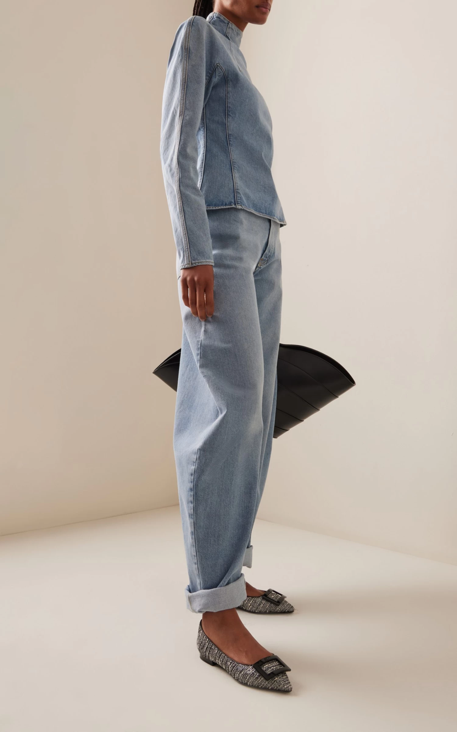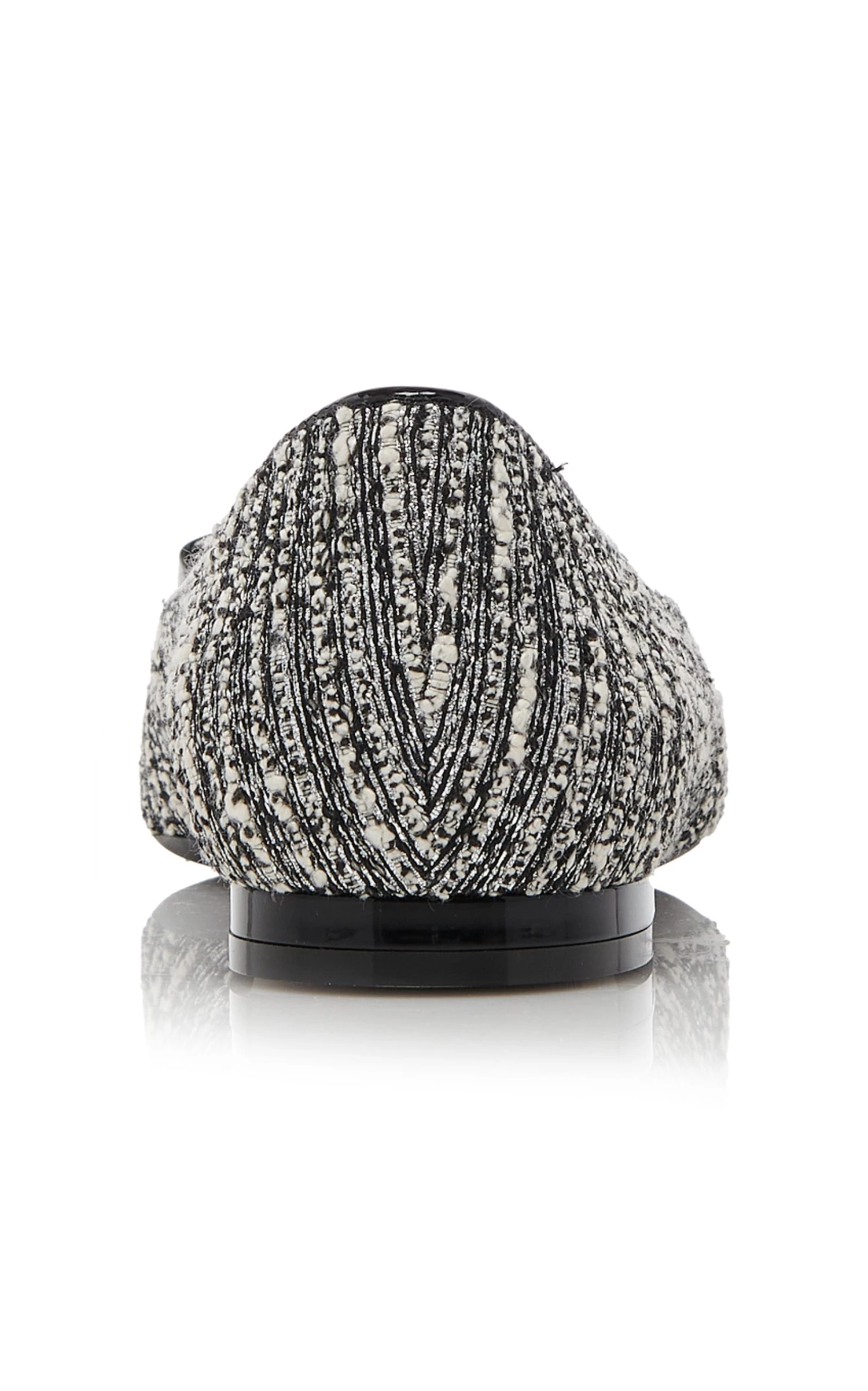 Crafted from textured tweed, these ballet flats have a pointed-toe silhouette adorned with a glossy buckle detail—a signature from the label. Wear yours with cropped hemlines to show off its pattern.