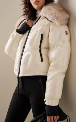 Designed to allow freedom of movement on the slopes, the Groisy down jacket is crafted from nylon légere technique. An internal powder skirt keeps the wind at bay, while water-resistant zippers keep you safe and dry on the slopes. A detachable faux fur collar adds a finishing touch.