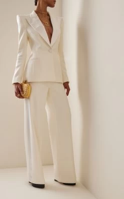 Tailored from wool crepe, these tuxedo-inspired trousers have an ultra-high waist with fluid wide legs. Complete the set with the matching blazer.
