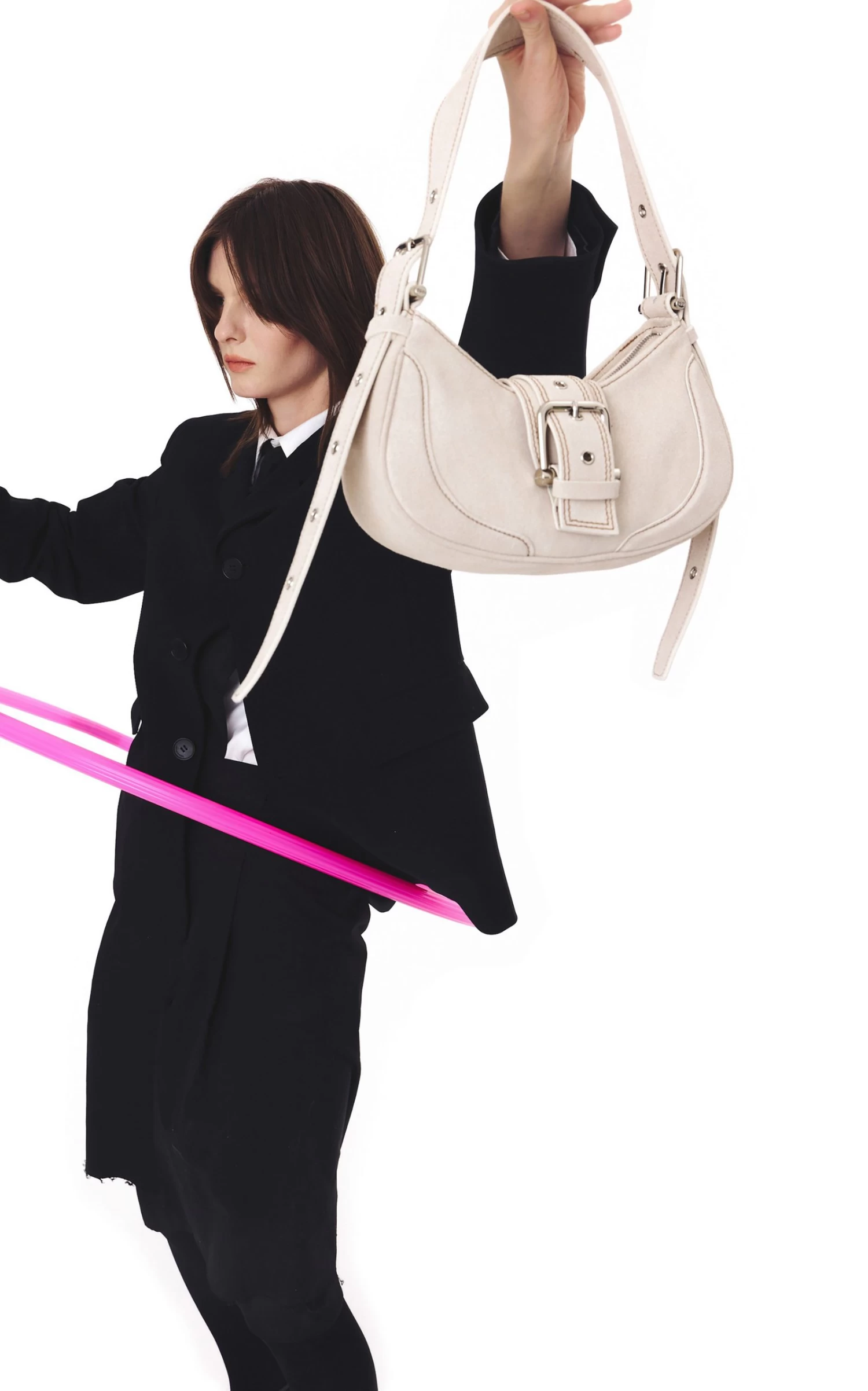- Designed based on ‘BUCKLE’, the main hardware of the BROCLE series, with added eyelet details to embody OSOI’s unique identity, wide belt design on the front and the strap that naturally fall create focal points, and the strap with eyelets can be adjusted in length to fit the wearer’s body shape, fully lined
