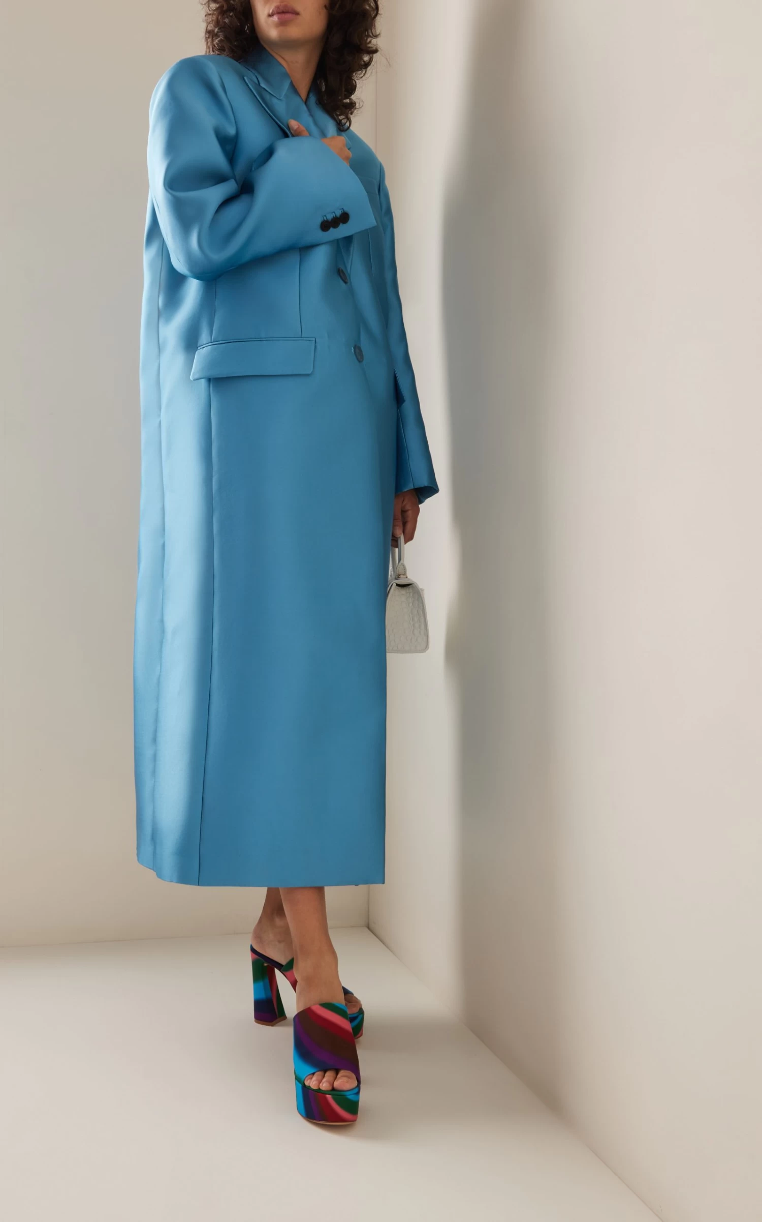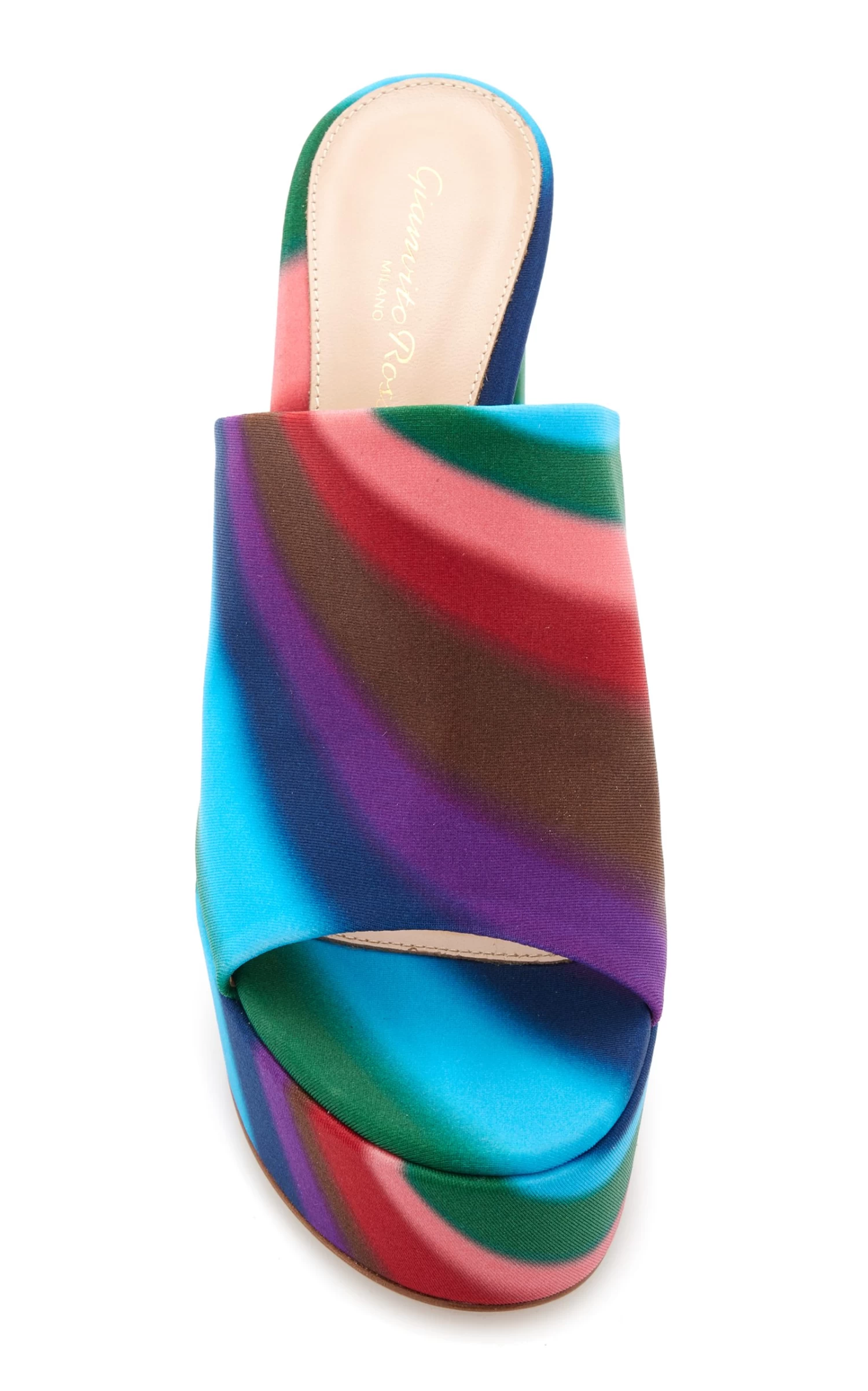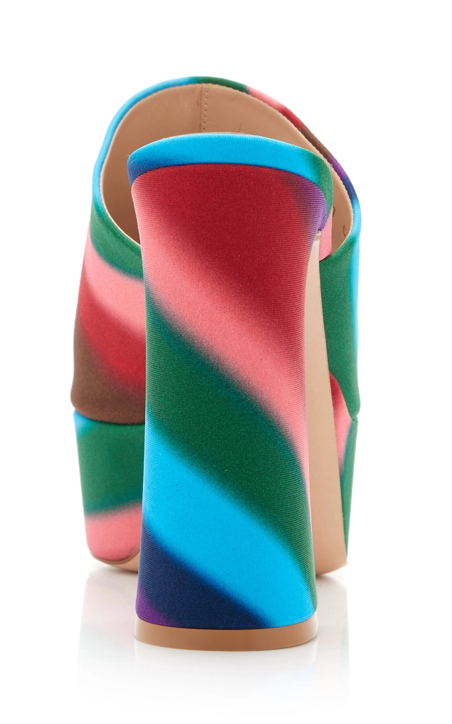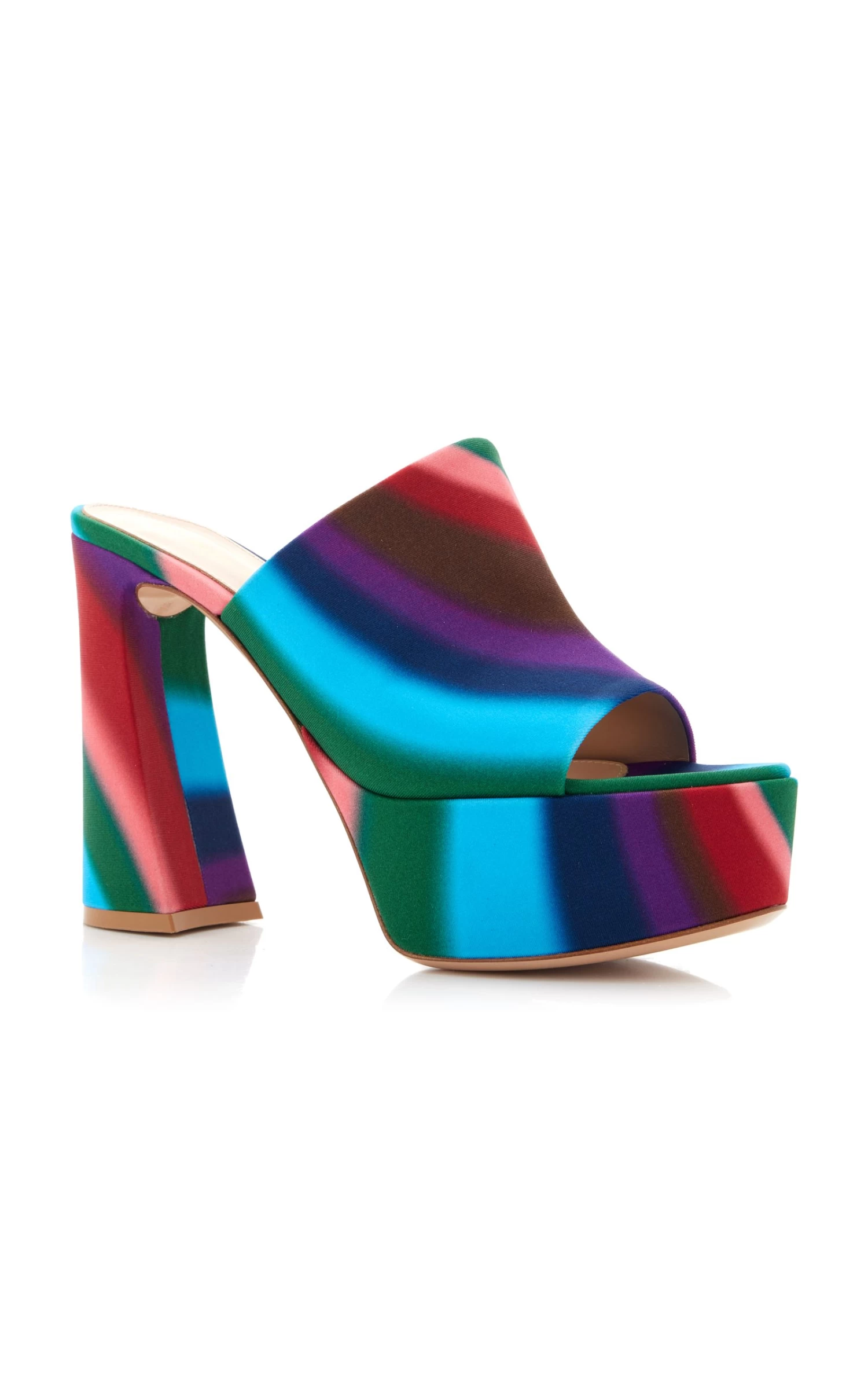Handcrafted in Italy, the ‘Holly’ mule has a ’70s-inspired silhouette made from hypnotic satin with a sky-high platform and comfortable block heel. Wear with flared denim or glam mini dresses.
