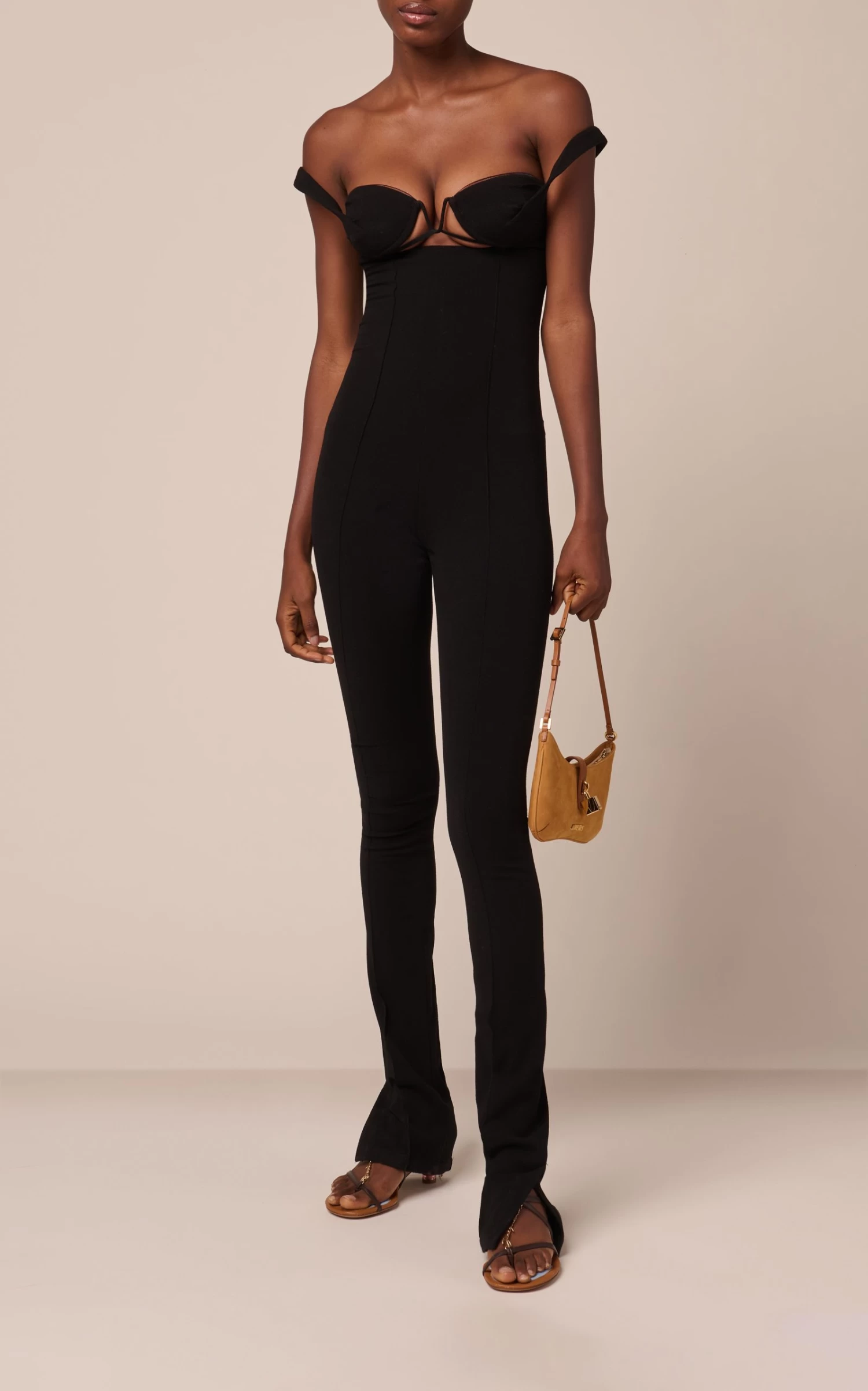 Made from a stretchy wool-blend, this jumpsuit has a fitted construction with a bikini-like bodice and straps that hang just off the shoulder. Accessorize it with one of the label’s latest ‘It’ bags — we’re fond of the ‘Bambino’ styles.