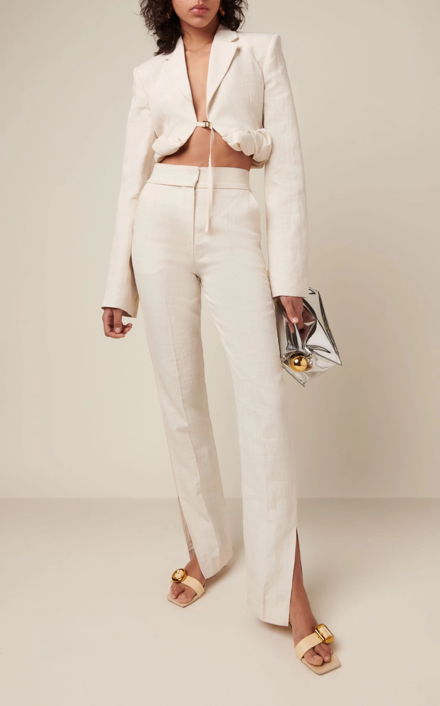 Inspired by the complex yet irresistible structure of a croissant, this open-front jacket is tailored from a linen-blend that’s twisted along the cropped hem. Complete the look with the matching pant.