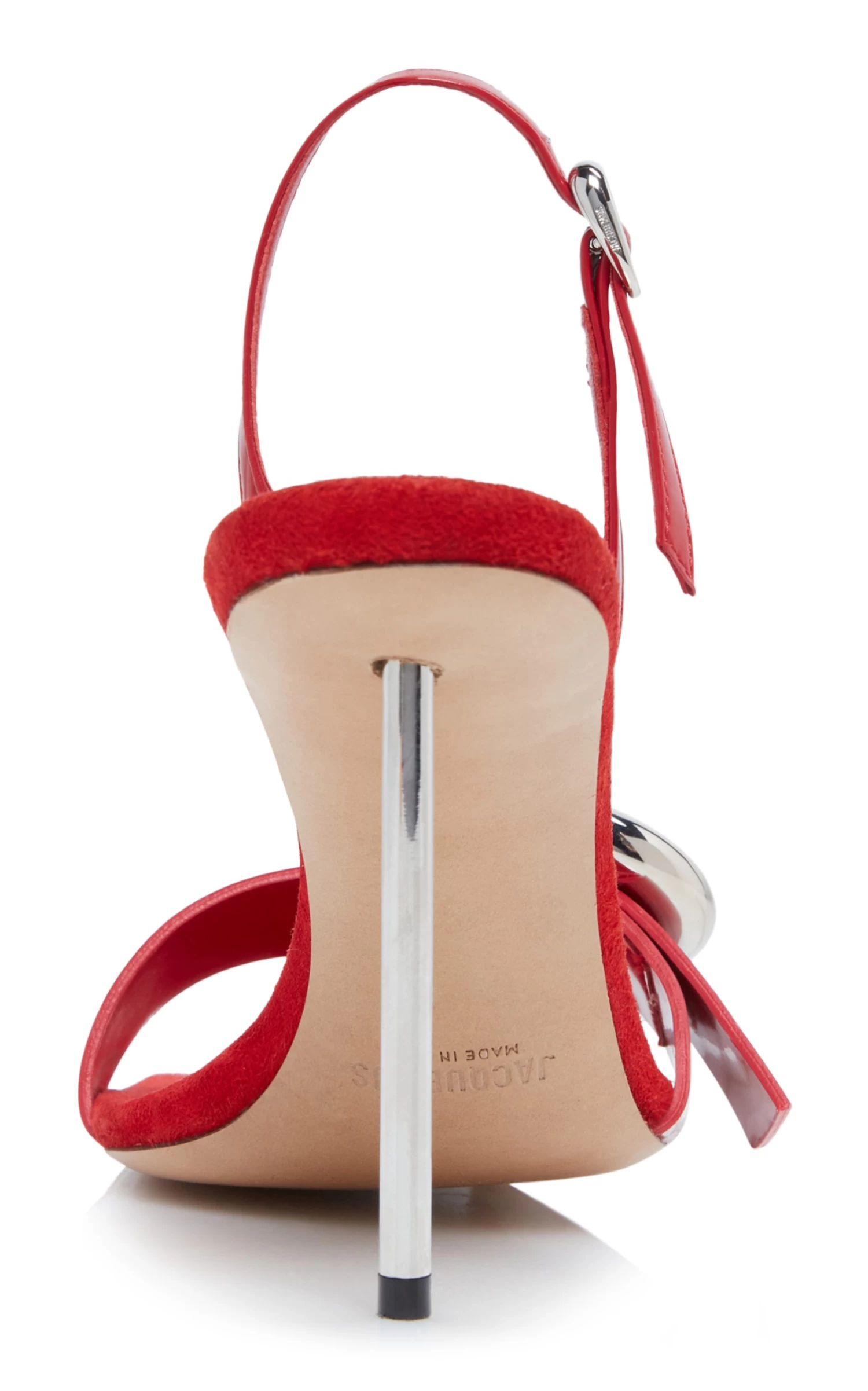 The ‘Regalo’ sandals have a sleek square-toe silhouette with a simple buckled leather toe strap that matches the stiletto heel. The lightly cushioned sole adds a dose of comfort.
