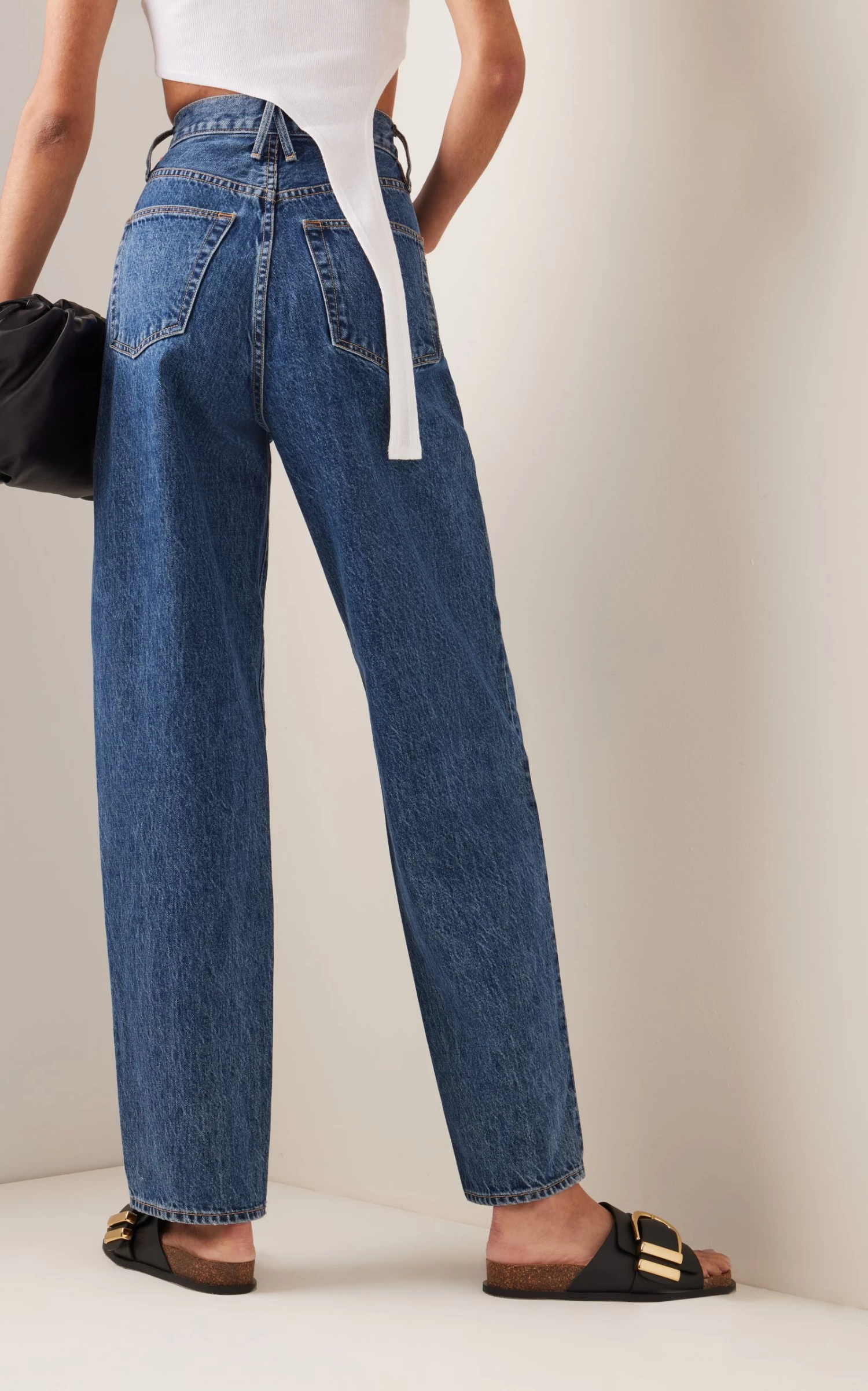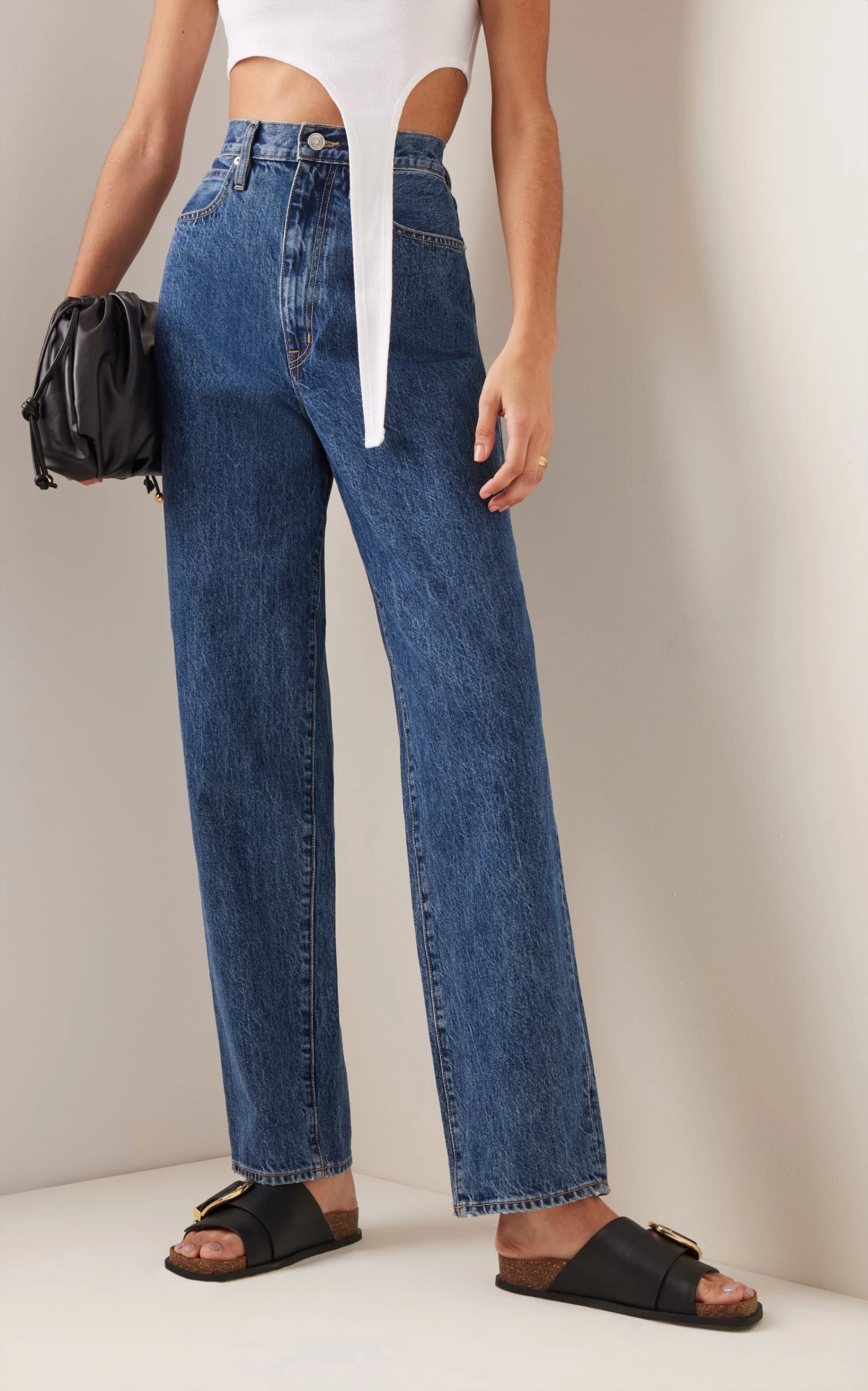 Cut entirely of cotton denim, these ‘Jessy’ jeans are high-waisted with a loose straight-leg silhouette. Wear yours with a t-shirt or bodysuit for a timeless, all-weather look.