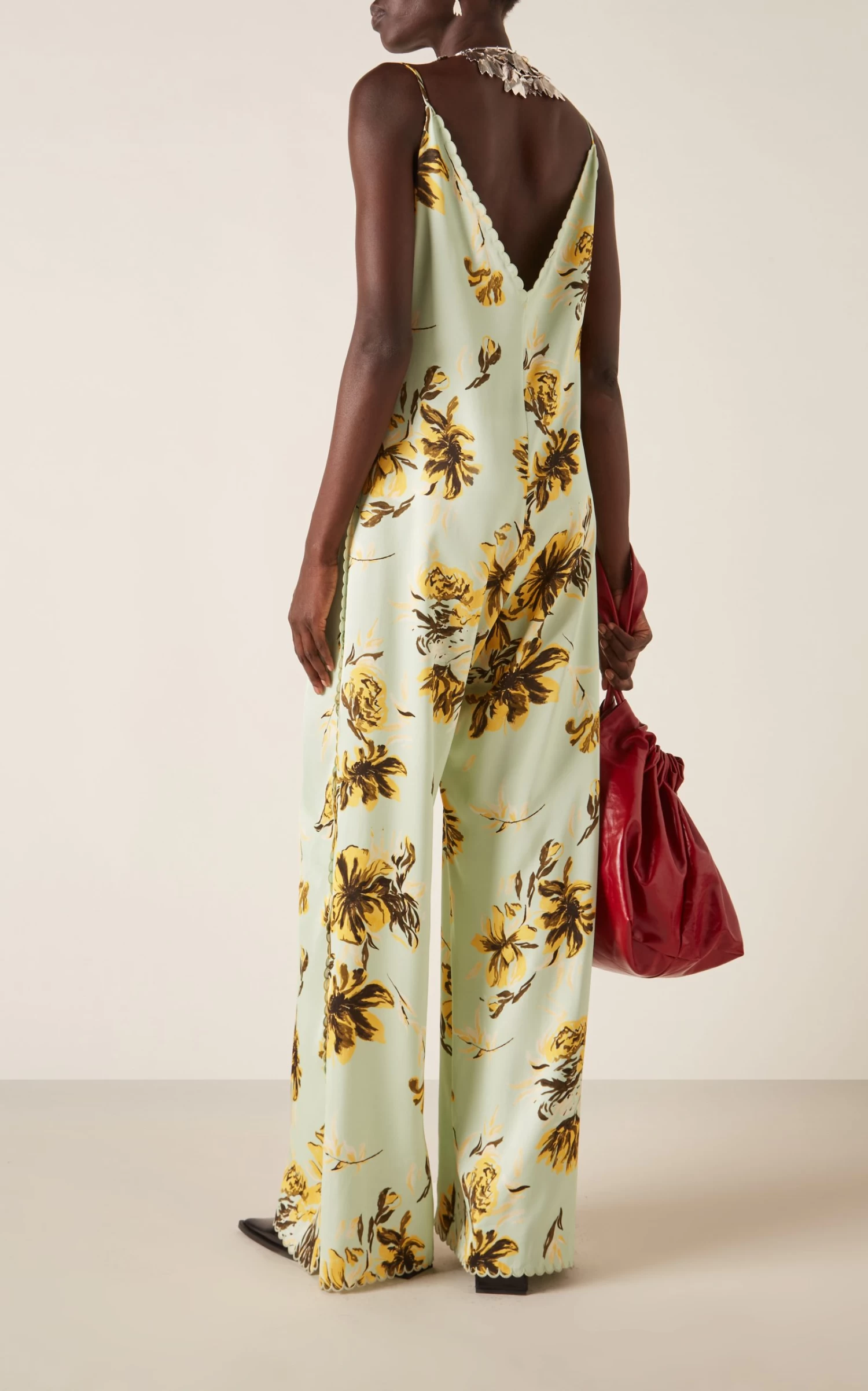 Tailored for a wide leg silhouette, this printed jumpsuit has is sleeveless with a v-neckline. Wear with gold jewelry and strappy sandals for a chic day look.