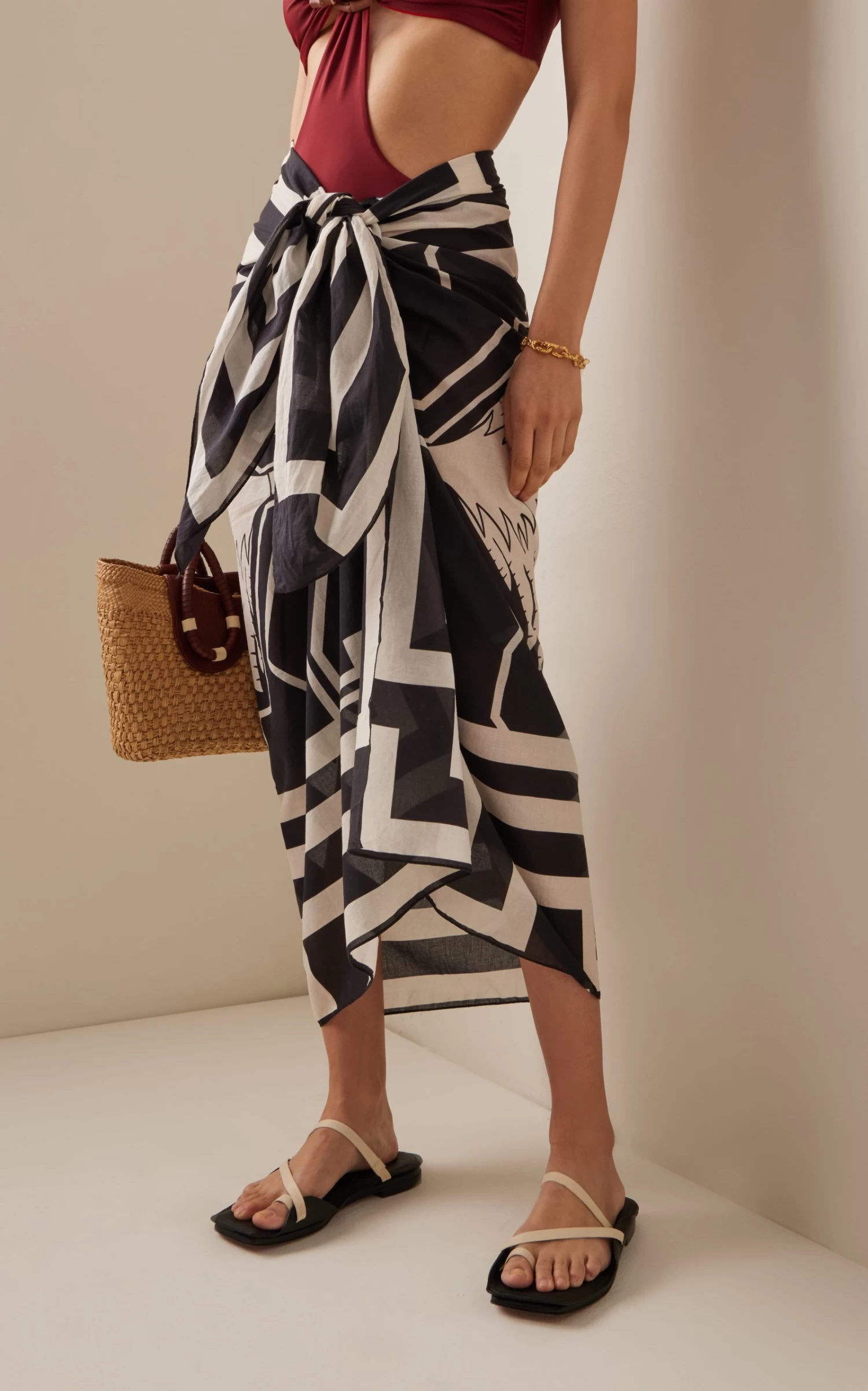 A brand signature, this pareo has a rectangular silhouette made from light-as-air organic cotton that can be wrapped multiple ways around the waist or bodice. Wear it with one of the stunning swimsuits from this season.